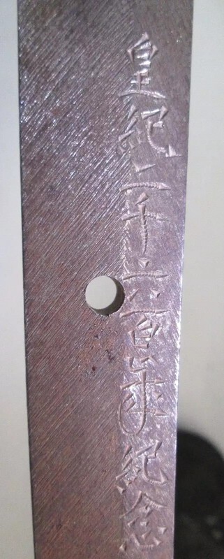 Noshu ju Kanenobu Koki ni sen roku hiaku nen ki nen 濃州住兼延 皇紀二千六百年 紀念 2600 th year of empire (1940) "memorable year" or "commemorate" less common to see that examples in Slough p. 54 & 552 points