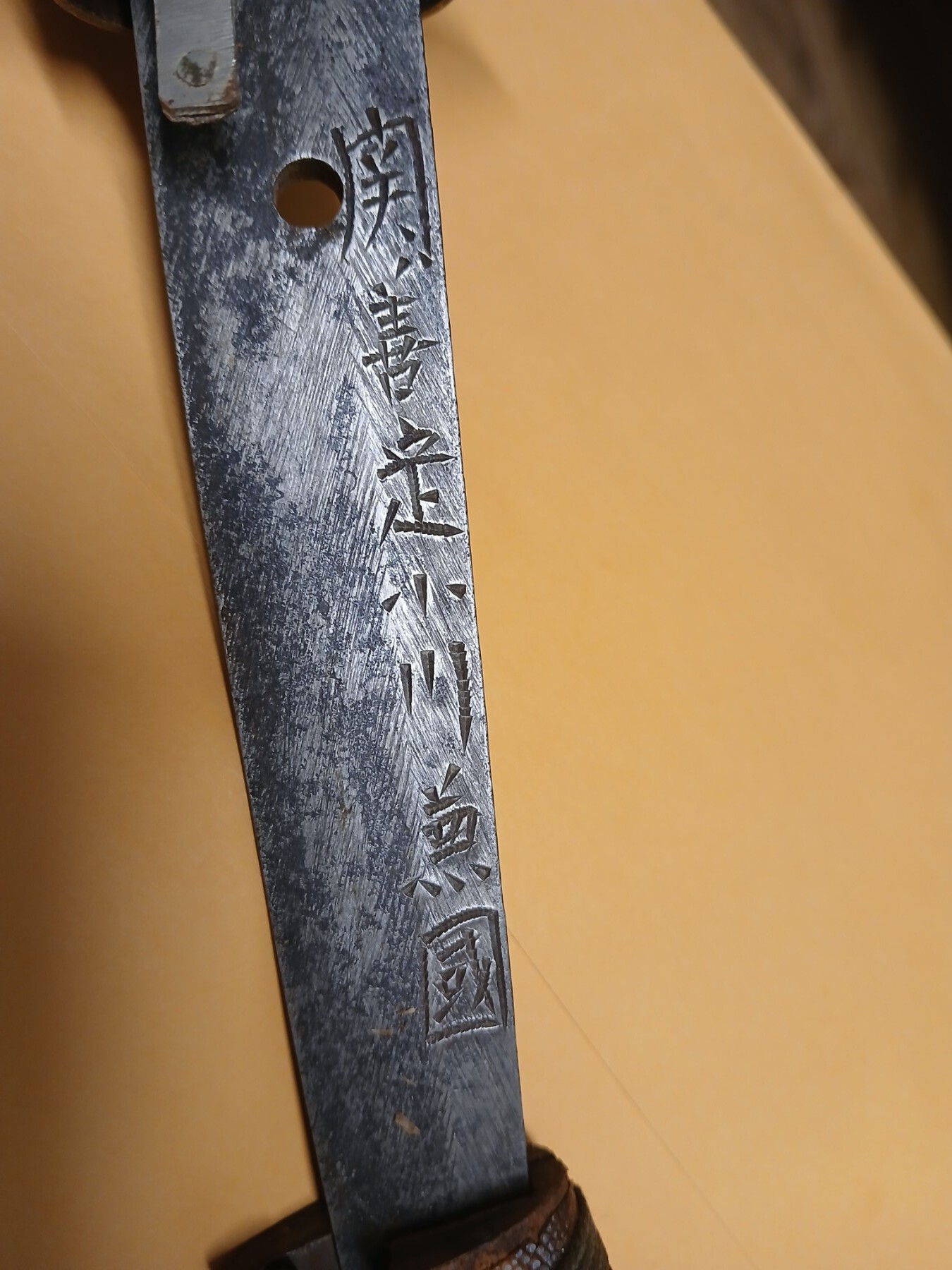 @fox1 Sam your blade is early war with a SHO stamp in sakura flower, which indlicates not fully traditionally made. But looks a good item. Of note it is in "samurai" civilian mounts not Army gunto. YOSHINAO 義尚: real name Takeyama Tsutomu (武山勲) Born Meiji 39 (1906) August 17, older brother of Yoshitomi (義臣). Registered as a Seki smith in Showa 14 (1939) October 27 (age 33). Rikugun-jumei-tōshō. Died Showa 57 (1982) July 11. In Akihide 1942 ranking is Jōkō no retsu (5/7). In exhibition 6th Shinsakuto 1941 is second seat (2/5). Examples of mei: (“Seki Fujiwara Yoshinao”) (“Noshu Seki Takeyama Yoshinao saku” SHO), (“Seki Fujiwara Yoshinao saku” SHO), (“Seki Fujiwara Yoshinao saku kore”) (“Noshu ju Takeyama Yoshinao kin saku”) (“Noshu Seki ju nin Takeyama Yoshinao kin saku” SEKI).1 point