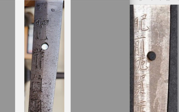 You see the elongated mei format from the Hizen smiths, both from the original Tadayoshi school and in the later Hizen (no) kuni gendai group.5 points