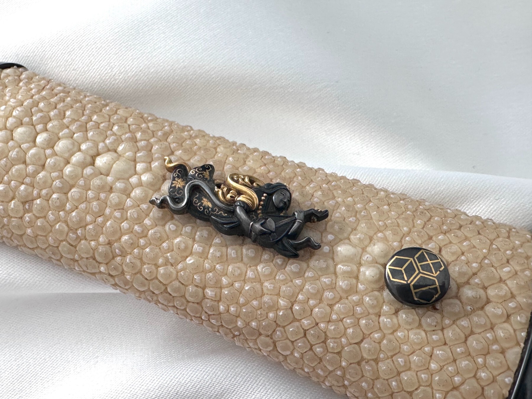 Hello all, I’m pleased to share something that I’ve gave a lot of effort to get. It’s a special order Naokatsu Wakizashi. Although the name is inscribed, I don’t want to give so much information about the person who ordered it as my research is still going on. All fittings are made and signed by 7th gen Goto Seijo, and whole set is original to the blade(possibly sageo as well), bearing the name of the same individual - been preserved in perfect condition for exactly 172 years. I’m not sharing detailed images of the blade yet, as it needs to be photographed in a better setup. And at present, it is not for sale. Hope you enjoy it.24 points