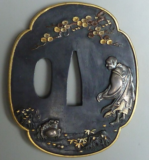 I have often thought that tsuba represented a cheap art form compared to many other collectables. Looking at those shakudo tsuba in my collection with good blue black patina I assume that these were made of shakudo with about 5% gold. Poor quality shakudo, with little or no gold in the mix (nigurome), tends to show a lot of brown in the patina. Comparing the price I paid for these tsuba with the current cost of gold (£122 per g) I find that, overall, the gold content is worth about 60% more. Probably dissolving the copper in nitric acid would allow recovery of the gold, but it is not something that I am considering. Pics of a couple of nice examples are attached. Just a thought, John1 point