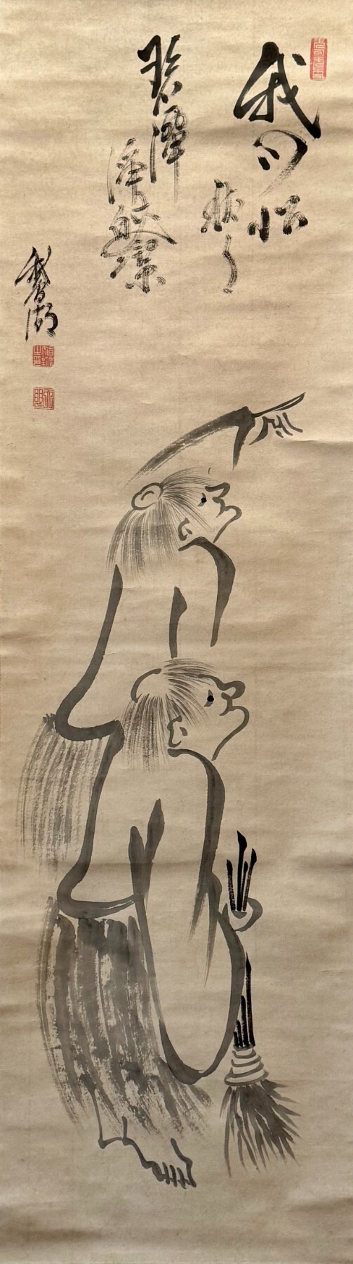 Hi Greg. Here is a write up that I took from my website: "The vast majority of his works were calligraphy from the Jubokudo lineage of Shodo established by Wang Hsi-chi (Wang Xizhi), a Chinese calligrapher of the 4th century. Yamaoka created a calligraphy manual based on the 154 Chinese characters of a poem – “The Eight Immortals of the Wine Cup” – by the Tang Dynasty poet Du Fu (712 – 770 A.D.) that is still practiced by the Chosei Zen Rhode Island Zen Dojo in the US." Part of the difficulty with translating Yamaoka's brushwork is that it is highly idiosyncratic, although extraordinarily consistent. He also mixed kanji with katakana in many of his works. Although his "calligraphy manual" is useful, it is only 154 characters long. It is often said that to read a Chinese newspaper requires fluency in at least 2,000 characters. And if we suspect that the work on the panels that I posted is taken from ancient Chinese poetry, we are now talking about this language in the hands of (e.g.) Tang dynasty poets! The only person I know of who was truly an expert translator of Yamaoka is John Stevens. I still mourn his recent passing. No longer can I reach out to him for help with translation. However, I continue to work on these panels whenever I see something familiar such as the kanji for "wind" as the second character in the last column. It gives me a cross reference. Interestingly, the Chosei Zen shodo practice uses the Yamaoka manual as a template for learning calligraphy as part of and to enhance zen practice. Breathing and form are very important in shodo, as they are in zazen and budo. I originally came into contact with Chosei Zen while seeking assistance with a Yamaoka work. No one there can read a complex Yamaoka work. In fact, I'm more familiar with Yamaoka's usage and range. As it turns out, they practice shodo without needing to know the meaning of the calligraphy--even purposely ignoring the meaning of the kanji in the process of focusing on the act of creating a beautiful brushwork that reflects the state of their minds in samadhi. So, I disagree with your statement that "calligraphy without translation is mere decoration, devoid of meaning." One of the remarkable qualities of a work by Yamaoka (or Otagaki Rengetsu for that matter) is that it is readily apparent that they were the work of a martial artist. His execution of characters on this particular panel is a perfect example. The columns and character spacing are perfectly aligned, one character flowing into the next without a break. The hand is sure, fast, and perfectly controlled as if he were engaged in a sword duel. His calligraphy has been analyzed under microscopic examination to reveal the absolute confidence in which the ink has been laid down on paper. Like a fortress, there is no way to attack or penetrate these lines from the outside. The panels are over 6 feet tall and stretch out to nearly 12 feet. When you stand in front of them, it is simply overwhelming. It feels like it a face-to-face encounter with Yamaoka's life force. Of course I would love to know the meaning of the poems on these panels. They will lead to other levels of meaning. Merely decoration? I don't experience them that way. One last thought. Here are two examples of the same Hanshan poem, brushed by Rinzai Zen master Gako (Tengen Chiben) and the Obaku Zen master Baisao. Their calligraphy reflects totally different pictorial styles separated by about a century and with different intentions--both admirable. Same poem/meaning. 吾心似秋月 (Wú xīn sì qiū yuè) - My mind is like the autumn moon, 碧潭清皎潔 (Bì tán qīng jiǎo jié) - clear and bright in a pool of jade, 無物堪比倫 (Wú wù kān bǐ lún) - nothing can compare, 教我如何説 (Jiào wǒ rú hé shuō) - what more can I say2 points