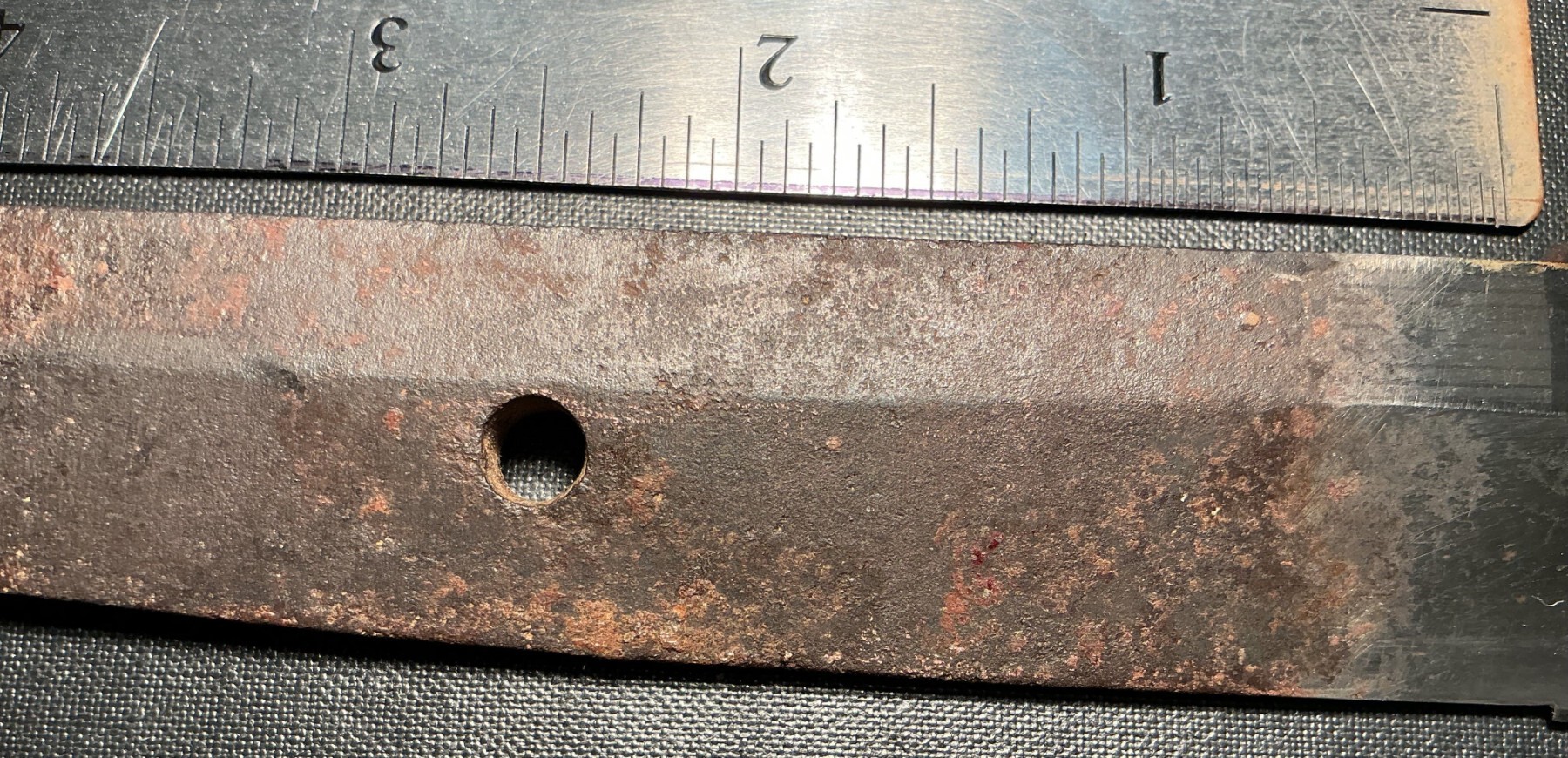 The dimensions of the tsuba look funky to me; the circumference seems small. The drilled mekugi ana seems unusually placed. The kobutogane has some extra material around the ana for the sarute that I’m not familiar with seeing. All that being said, I’d still like to see more photos… You do see some weird stuff sometimes with WW2 swords. I’ll relocate the thread to the military section for some more eyes. We can always move it again if needed. Sincerely, -Sam1 point