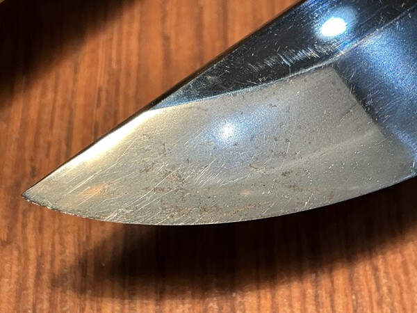 Hi Andy, This is probably not too much to worry about - it’s an antique blade and if it isn’t going to be used for cutting, it’s just part of the appeal of an older blade.1 point