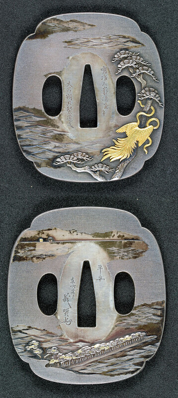 As for Togintei Sato Yoshiteru, Ive found a Juyo set of daisho tsuba, a few more Tokubetsu Hozon tsuba and one more tsuba on the Japanese cultural heritage website. I've also found other fuchi, menuki, and various fittings with his signature on it as well as a few metal storage boxes bearing his signature. The Boston MFA has a few kozuka but their images don't show the signatures and just show the front panel only. The only history I can find on him is from old auctions saying he studied under Araki Tomei from the Goto Ichijo school and Sato Toho later taking the Sato name after marrying into the family. From Jussi's juyo index I can see the following Juyo items: Juyo 34 - Daisho Tsuba Juyo 35 - Daisho Tsuba Juyo 44 - Chiisagatana Koshirae - Fuchi signed (Yoshiteru – 義照彫之) Juyo 47 - Daisho Koshirae (I believe this may be the daisho koshirae in the above photos) Juyo 58 - Daisho Tsuba Below are the zufu for Juyo 34 and 35 Daisho Tsuba2 points