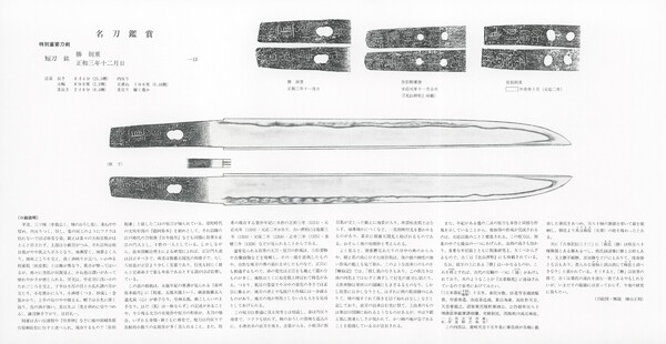 #72Buzen-Gō Sword, Unsigned, Gō Yoshihiro (Meibutsu: Buzen-Gō) Length: 2 shaku 2 sun 5 bu (68.2 cm) Curvature: 5 bu (1.5 cm) Mekugi: 1 Important Art Object, Designated May 27, 1937. Owner at the time of designation: Count Ogasawara Tadaharu, Tokyo. Important Cultural Property, Designated June 28, 1956. Buzen-Gō is said to be the work of Gō Yoshihiro, who resided in Matsukura-go, Etchu Province, and is the most flamboyant of Gō Yoshihiro's works. Ownership of the blade: The origin of the name "Buzen-Gō" is unclear, but the sword was handed down to the Ogasawara family of the Ogura Domain in Buzen Province (different from the Ogasawara family of the Echizen Katsuyama domain where Uguisumaru was kept). The Ogasawara family also owned the Hakata Toshiro, Fudou Yukimitsu, and Akita Toshiro but it is unclear if they owned them all at the same time. Designated as an Important Art Object on May 27, 1937. It was owned by Count Ogasawara Tadaharu at that time. Akita Toushirou, which was designated as an Important Art Object in the same year, was also in the same collection. In the 1949 publication "Commentary of National Important Art Objects of Yamaguchi Prefecture" is recorded that the sword is owned by Yamada Shinmatsu. Designated as an Important Cultural Property on June 28, 1956. Exhibited in the "Masamune and His Clan" exhibit held in 1961 and owned by Nakazawa Akira. Exhibited also at the "Famous Japanese Sword Exhibition" held in 1968, but the owner is not recorded. According to a 2018 survey conducted by the Agency for Cultural Affairs, its whereabouts are currently unknown. Description of the blade: Buzen-Gō differs somewhat in style from other Gō swords; while the blade width and cutting edge are of normal form, the forging shows a fine wood grain mixed with mokume, with ji-nie (small crystals in the surface), and the hamon (temper line) is a mix of gunome (irregular wave pattern), notare (undulating pattern), and choji (clove pattern), with deep indentations and extending into the shinogi (ridge line) in places. The boshi (tip) is broken down and sweeping. Although it exhibits an unusual style, it is generally consistent with other works by the same artist and is a superior example among them. It is a long tachi (long sword) that was shortened to a katana (short sword). Shape: Shinogi-zukuri, Iori-mune, slightly thin cross-section, medium-sized point. Forging: Fine wood grain pattern, mixed with mottled surface, fine ji-nie (small crystals). Hamon (temper line): Wavy with gunome (irregular wave pattern), frequent ashi (legs) and ha (leaves), with occasional kinsuji (golden lines), making the striking surface particularly brilliant on both sides. Overall, the nioi (misty effect) is very deep, with fine nie (small crystals). Boshi (tip): Irregular and sweeping pattern with kinsuji. Tang: Greatly shortened, chestnut-shaped tip, cut file marks, one mekugi-ana (peg hole). The name "Buzen-go" is written in red on the reverse side. Honma Talks: Regarding Gō Yoshihiro, Dr Junji Honma describes him in detail in his book, "Masamune and His School" (1961) The following in parentheses is an translated excerpt from the same book: "To understand the style of Yoshihiro, or Go, one should first examine Inaba-Gō (or Tomita-Gō), Murakumo-Gō, and Matsui-Gō. After fully understanding the Gō style, one should finally examine Buzen-Gō. All existing works by this artist are greatly shortened swords; no reliable short swords have been found. Swords can be broad-bladed with extended tips (e.g., Tomita-Gō), of normal width and tip (e.g., Kuwana Go), slightly extended tip (e.g., Samidare Go), or somewhat slender e.g., (Collection of the Tokyo National Museum), these are all Iori-mune. The forging is of the same type as: tightly grained ko-itame (e.g., Inaba-Gō), mostly straight grained (e.g., Murakumo-Gō), and a mixture of itame and straight grain. There is ji-kei (pattern in the steel), but it is not as prominent as in Masamune or Norishige. All have good ji-nie (small crystals in the steel), and the coarse nie is not as noticeable as in Masamune or Norishige. The hamon (temper line) is mostly shallow and irregular, mainly small notare (e.g., Inaba-Gō), in which case the nioi (cloudy effect) is particularly deep and there is ko-nie, and sunagashi (sand-like patterns) are relatively few. Also, straight, undulating, and small irregular patterns (e.g., Murakumo-Gō) have particularly prominent nie (crystals), and some have frequent sunagashi (sand-like patterns), fraying, and uchinoke (striking patterns). Some have tight straight patterns with small nie, and some have ashi (legs) and ha (leaves) (e.g., Matsui-Gō). However, ashi and ha are present in all of the above types of hamon. Moreover, all types of hamon are deeply tempered, especially from the monouchi (striking point) to the boshi (tip), and some have a single boshi. The boshi is generally less elaborate than the activity below, and sōme are shallowly irregular. Many have a rounded shape, some with a pointed shape (Matsui-Gō), some with a flame-like shape, and some with a slight sweeping effect. The hamon (temper pattern) of Buzen-Gō swords is unusual, with a deep in-and-out pattern of gunome, notare, and choji (clove-shaped) patterns, and in places extending onto the shinogi-ji (ridge line). There are no carvings other than grooves, and while Inaba-Gō sword has grooves that slope downwards and deep, skillfully crafted bo-hi (straight grooves), generally, most do not have grooves." (Reference: Reprinted, quoted, and excerpted from the Encyclopedia of Japanese Swords) #72Buzen-Gō2 points
