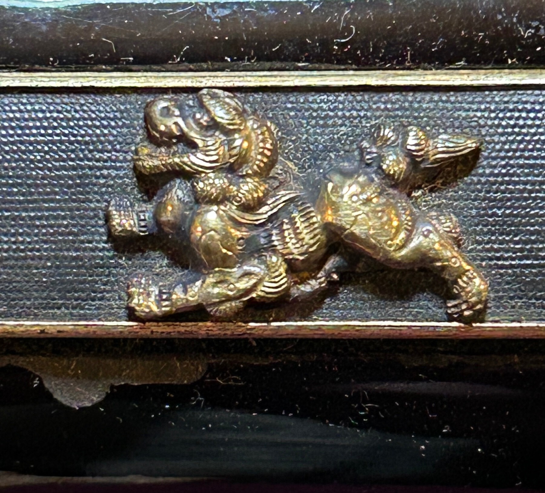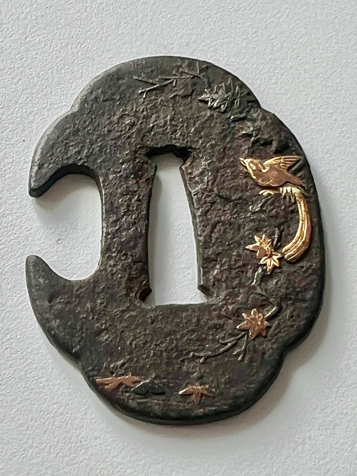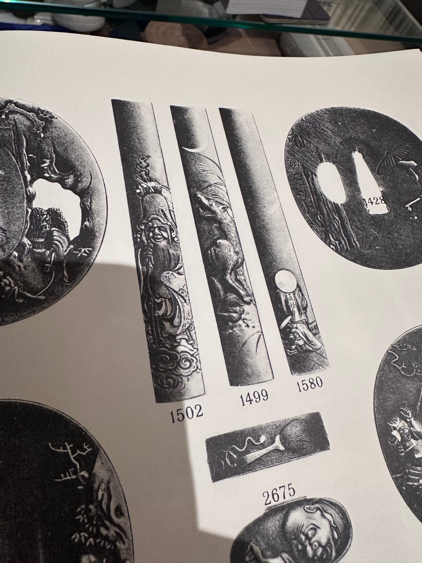 Welcome to NMB James! a GUNTO lock It would help James if we had an idea of the size of the guard, these examples show where a locking mechanism was fitted to secure the tsuba to the saya - If your guard is bigger the hole would not be for such a mechanism, but if the guard is small possibly for a tanto then a lock may be the reason there is a squarish hole in yours. However there are a number of guards that do have square or rectangular "hitsu" such as this example From David Stiles on a post from 2025 Many examples of sukashi tsuba with squared hitsu in this thread but also a number of solid plate pieces which might help.1 point