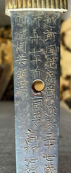 Hit a minor milestone today, as I found a 4th blade painted "45". We've had some triples so far, but this is the first fourth. It's a Toyosuke blade with the small circled anchor. On auction at this eBay page. She's asking kaigunto price of $2,200 which is a bit over market price for a souvenir. I sent a message to her. We'll see if she responds.1 point