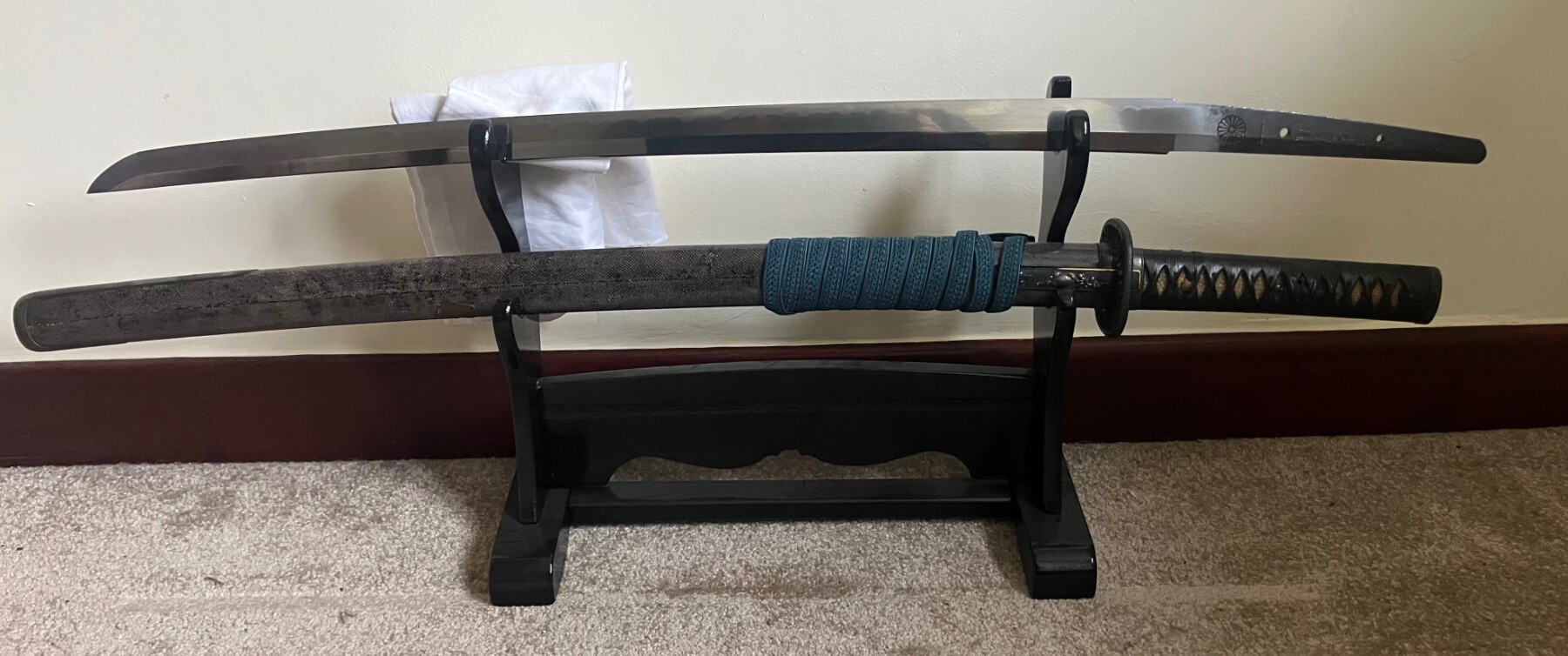Given that I need to pay my polisher and a few other obligations, here is one more reduction as well as some additional pieces listed for sale. 1. 28" katana in shirasaya. $2100 -> $1900 2. 19" wakizashi in substitute saya. $1500 -> $1400 3. 27" katana in partially restored gunto mounts. $1800 -> $1700 4. 23.25" o-suriage early to mid Kamakura tachi in assembled mounts. Off the market. I have decided to get this one put in shirasaya and papered. 5. 24.5" katana in remnants of WWII leather-cased mounts. $1800 -> $1700 6. 26" katana of WWII origin. No further reduction on this one. $900 7. 17" wakizashi in American-made saya. No reduction on this one! SOLD! 8. 11.25" tanto in restored mounts. $1200 -> $1100 9. 26" katana of WWII origin. $1050 -> $1000 I have also decided to list these pieces for sale, if you are interested then please request pictures. A boy's tachi, 18" nagasa, signed to Omi no Kami Minamoto Hisamichi, with kikumon. 1st generation, 1650-1673, needs restoration but is worth having done so. In shirasaya. Silver-plate habaki. I believe this one is shoshin. $2200 A Bizen no Kuni ju Osafune Norimitsu wakizashi, dated to February 1506, 20" nagasa, in the remnants of Satsuma Rebellion mounts with classic washer menuki. Needs a polish and habaki, but the rest of the mounts are present. I suspect the habaki was shorn off by a bullet strike to the tsuba as there is a clear bullet strike on the tsuba that has bent the tsuba itself. No reason to disbelieve a signed/dated piece from this smith is anything but shoshin. $1700 A Koto katana, possibly Kamakura... at latest Muromachi based on sugata and workmanship according to polisher, 28" nagasa. Was shortened to fit Kyu-gunto mounts and is therefore o-suriage. Bohi were added on during this time. Ill-fitting silver plate habaki with kyu-gunto tsuka. No saya, I had to make a paper saya for this one. $2200 A lady's kaiken, bare blade, narrow suguha. 6.125" nagasa. Ca. 1680. A cheap little project knife. $400 A Soshu Naginata, circa 1380-1410. 18.5" nagasa. 36.25" OAL, so this one is ubu. Very much worn down but enough to bring back even still. Itame hada at the ha that turns into masame at the boshi. Could even be possibly earlier. Had a very long signature on the nakago that is completely rotted out and illegible now. $2250. A Yokoyama Sukesada wakizashi, circa Kanbun. Signed Yokoyama Kozuke no Kami Fujiwara Sukesada, probably a lesser generation? Needs more investigation. Has beautiful Yokoyama Choji/Gunome mixed hamon. Masame in ji. In original black lacquer saya with habaki and tsuba. No tsuka. $1800 A rather rare SIGNED Owari-den wakizashi, signed to Noshu-ju Ujimasa. Circa Kanbun. Damaged silver-plated habaki, bare blade. Needs a polish. Not sure how to price this one, so just tossing out the price at $1000 since I've never seen a signed Owari blade. 17.75" nagasa, ubu. Two rather rough-condition tanto in full mounts for $1,000, being sold as a pair. One is earlier, probably 1600-1650 and the other is probably 1800's. These are good for display, but would not make sense to pay for restoration. Perfect for an amateur to dabble with though I suppose. The mounts are clearly made for export. Shipping is $100 CONUS, and will include the original valuation insurance. Outside CONUS, shipping will be discussed and as reasonable as possible. You can ask any of my previous customers. I made sure things are transparent and arrive quickly. If you would like pictures of one, feel free to DM me. ~Chris1 point