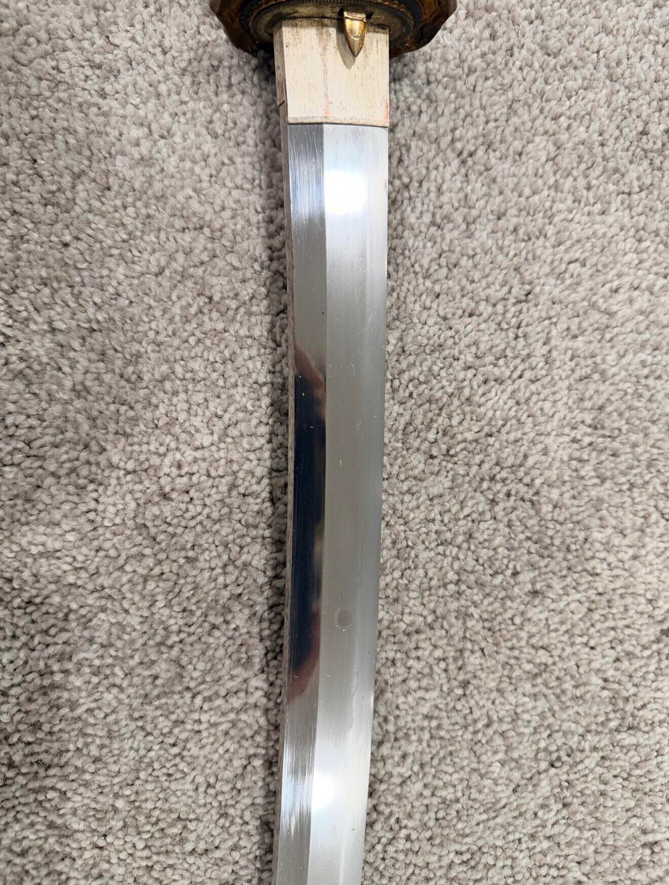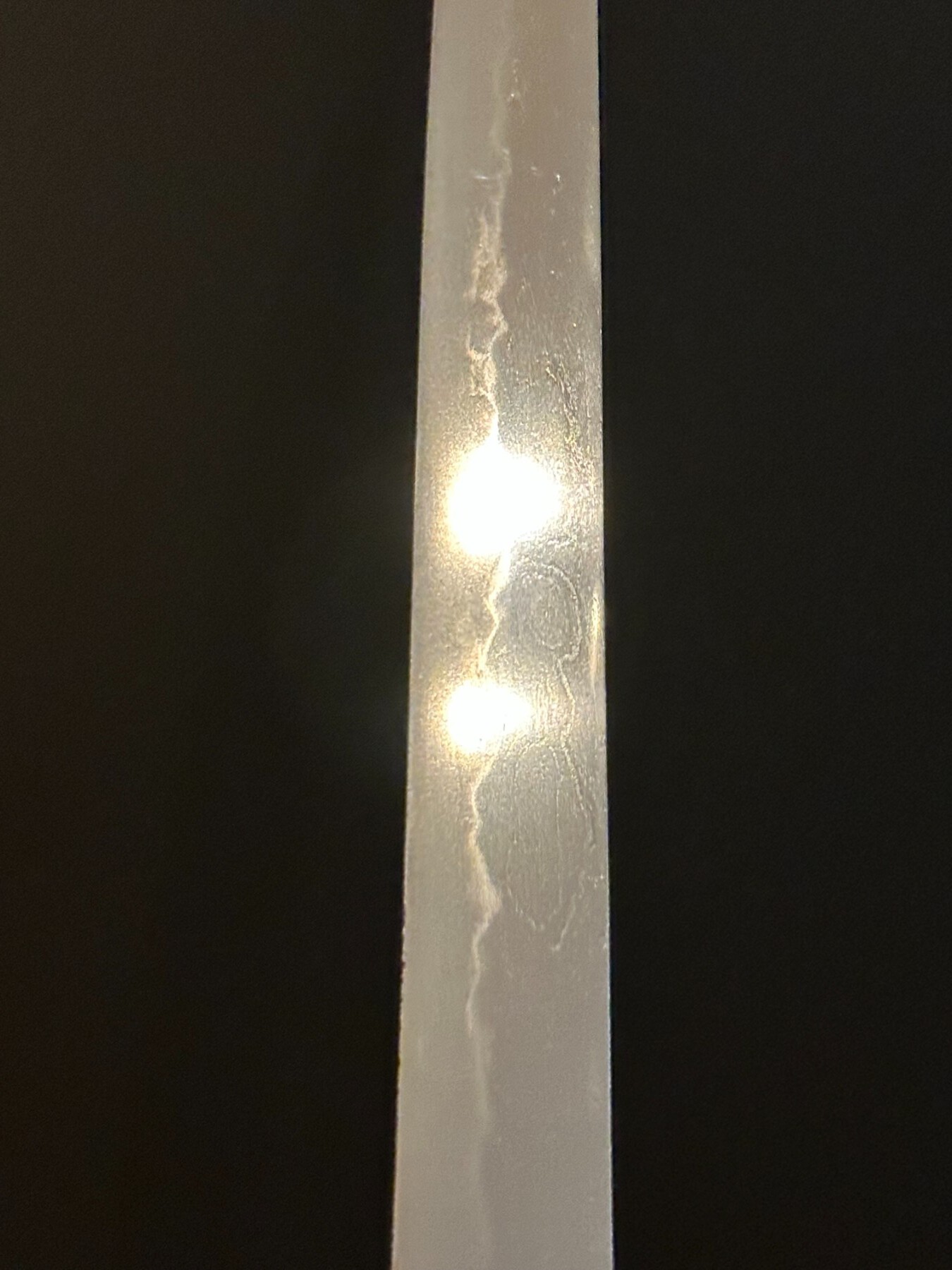 Bishu Osafune Sukesada Papers: NBTHK Tokubetsu Hozon Country(Kuni)・Era(Jidai): Bizen(Okayama)・Late Muromachi period - August, 1567 (Eiroku 10th year) Blade length(Cutting edge): 71.5cm Curve(SORI): 2.5cm Width at the hamachi(Moto-Haba): 3.22cm Thickness at the Moto-Kasane: 0.77cm Wide at the Kissaki(Saki-Haba): 2.55cm Thickness at the Saki-Kasane: 0.60cm Habaki: oneo part, gold foil Habaki Sword tang(Nakago):Unaltered, Kattesagari file pattern Rivet Holes(Mekugiana): 1 Shape(Taihai): Shinogizukuri, Iorimune, Chu-kissaki Dated and has a wide width and thickness. Hamon is Gunome and Choji with Tobiyaki. Jigane is Itame and Mokume. Nakago is Ubu. Asking: $12,000 Payment: Bank transfer Shipping: Free for continental USA (you pay elsewhere) - but if you want to return it I need to deduct it from the refund This will be going onto Nihonto Antiques soon if it is not picked up here first. Excellent condition, polish is in sashikomi with a very beautiful "light behind the clouds" effect. Strong sugata.2 points