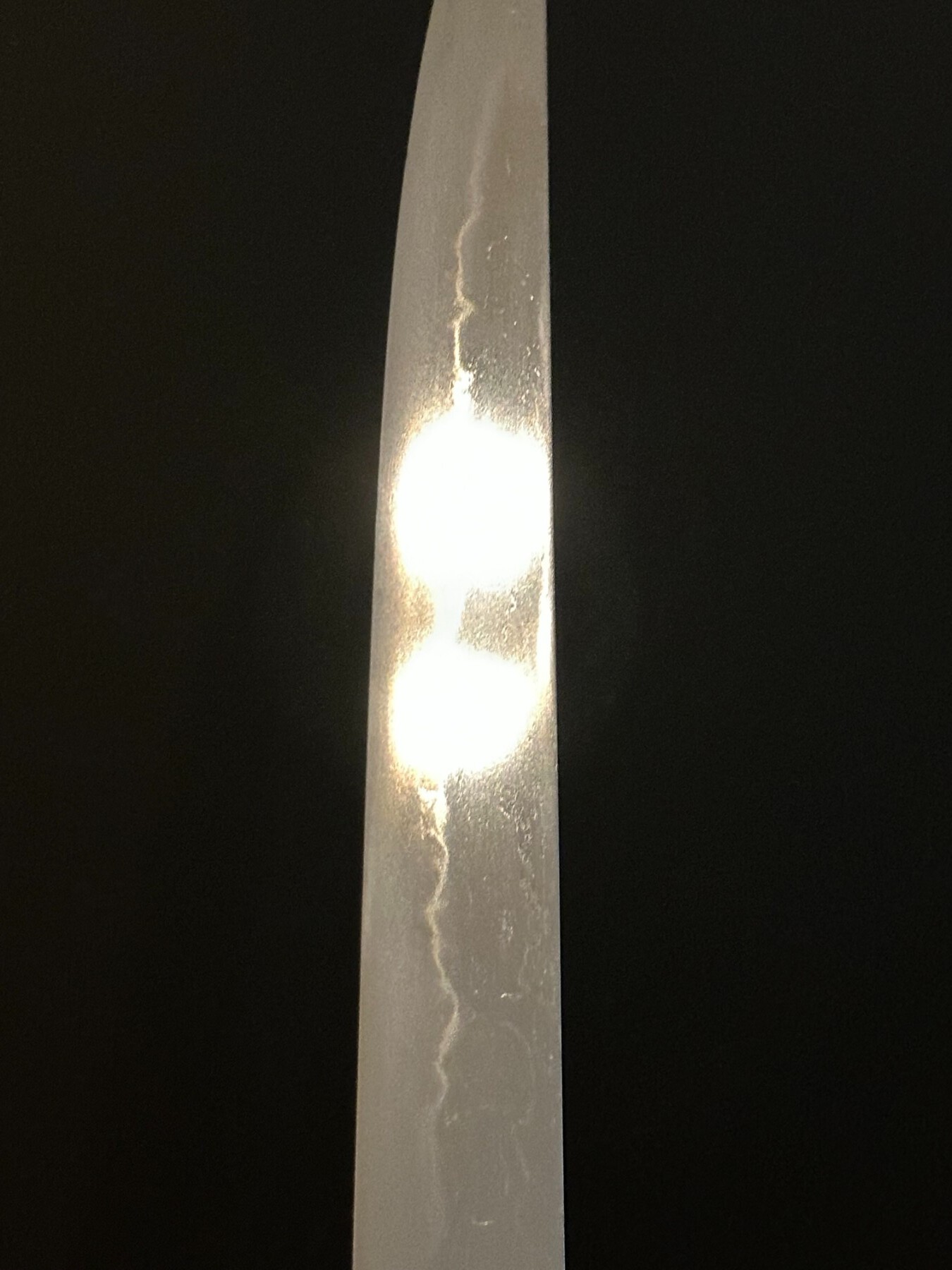 I do have concerns about the sword. In my opinion, it looks severely altered or messed with. The proportions make me wonder if it’s been machi-okuri, and the nakago looks like artificially accelerated aging rather than natural patina. That makes me question whether there might have been an effort to obscure a stamp, or make it "look" older than it is.1 point