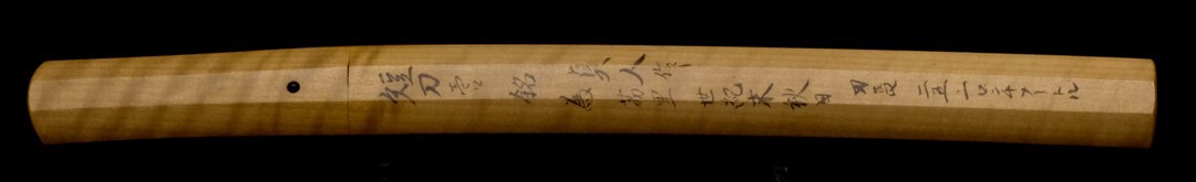 Wow, Trystan! What do you think we are seeing here, with the label/stamp? This seems to imply they were stamping the donated/bought swords as they collected them, and numbered them? Google says "Takeuchi" means "bamboo inside", but I doubt the saya was made of bamboo. What do you think it is saying?1 point
