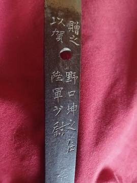 @John C Thanks for the tip on the field grade ranks. That was the start of the writing on the tag. I found that Sasebo is a city in Nagasaki Prefecture. Nagasaki is where my neighbor’s father acquired the sword.1 point
