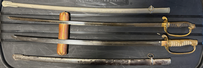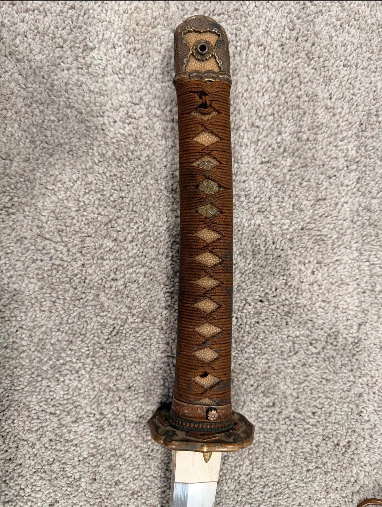 Indeed interesting. This one has been on eBay for some time now. It actually has sparked a big question for me... I notice that the stamen on the sakura menuki have raised details. Whereas a sword in my collection in the 151k range with the same ferrule stamps has engraved stamen on the menuki. I have since been trying to narrow down when this change happened. Along with fine details on the tsuka amongst all subcontactors. Someone out there might already know the answer. I'm leaning toward the interpretation that Suya may have switched casting moulds around their last batch of production. Other interpretations may vary... -Sam (Sword on the left is serial number 151,957 東 with ferrule stamps: Suya, 東 , Tokyo1st Star.) (Sword on the right is just a side-by-side example of the difference found in sakura stamen details. 54,683 東, no ferrule stamps, "Dawsons 2a", with thick seppa.)1 point