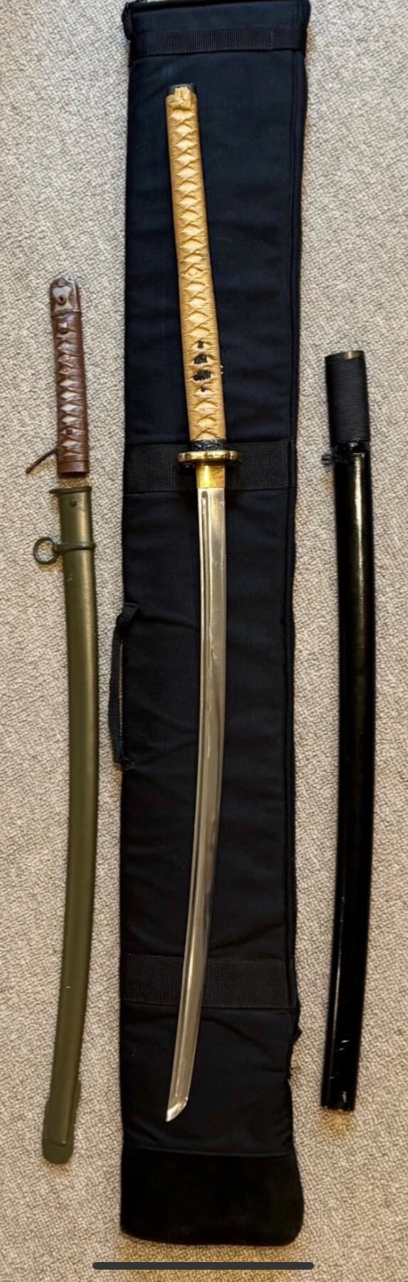 Here is an interesting Type 95 Guntō, with some "bling". I'm sharing here rather than the 95 threads, because these unique features are not factory original. Note the Habaki, leather hanger, and most interestingly those "monkey’s-fist knot" mekugi and grommet screws. https://www.ima-usa.com/products/original-wwii-Japanese-army-type-95-nco-aluminum-handle-katana-sword-with-rare-leather-hanger-matched-serial-79051?variant=41101181190213 Already sold, not sure when. -Sam1 point