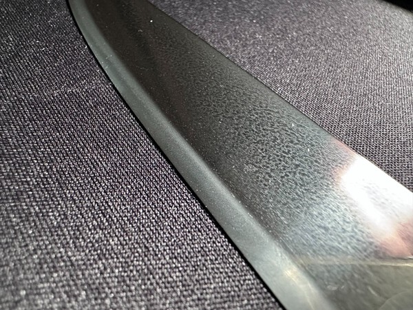 Here is the final product. I'm quite happy with the outcome of my freshman project. I changed the tsukaito wrapping style to the less ambitious menpumaki moyo iri style and finished it off with a custom-made silk sageo. There is a slight misalignment in the seating of the fuchi against the koiguchi because the drilling of hole in the tang for the mekugi is slightly off, thereby changing the angle slightly. During drilling, I accidentally drilled into the tsukaito on the opposite side of the tsuka, requiring repair with Seiwa glossy water-based leather finishing agent. I really should have done all of this before I wrapped the tsuka. I may redo the entire tsuka/tsukamaki and drill new hole in the tang to correct all of these mistakes. I need to shim some wood veneer into the sides of the opening of the koiguichi to tighten the seating of the blade and eliminate slight side-to-side rattling. Otherwise, the saya turned out quit well.1 point