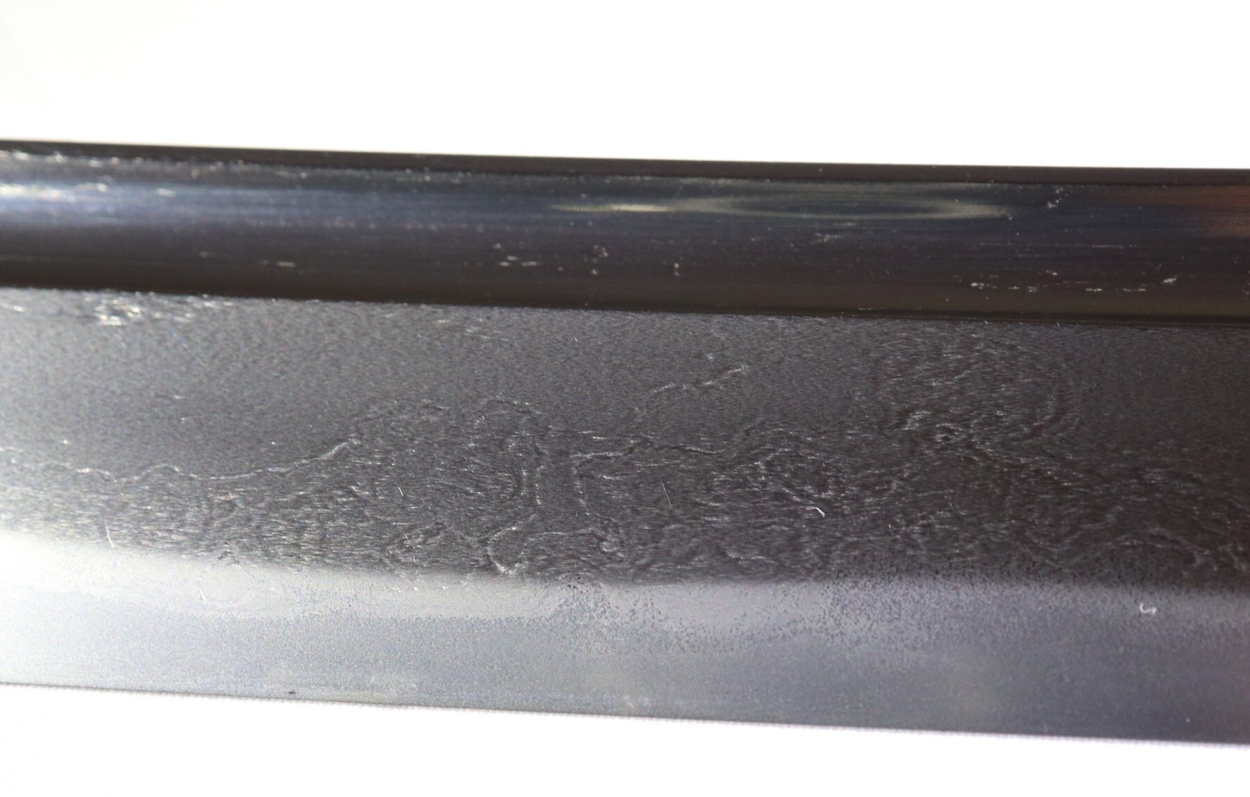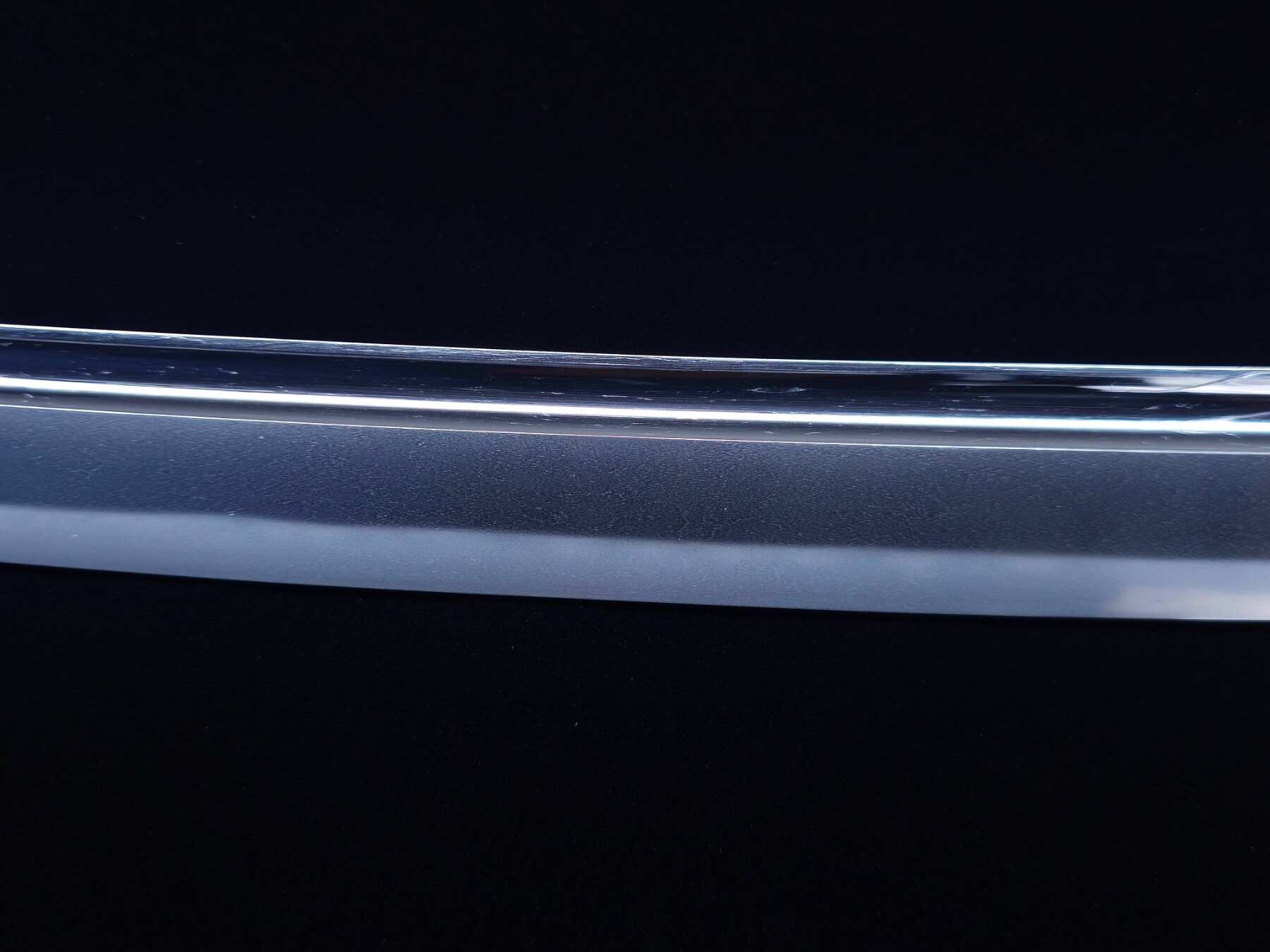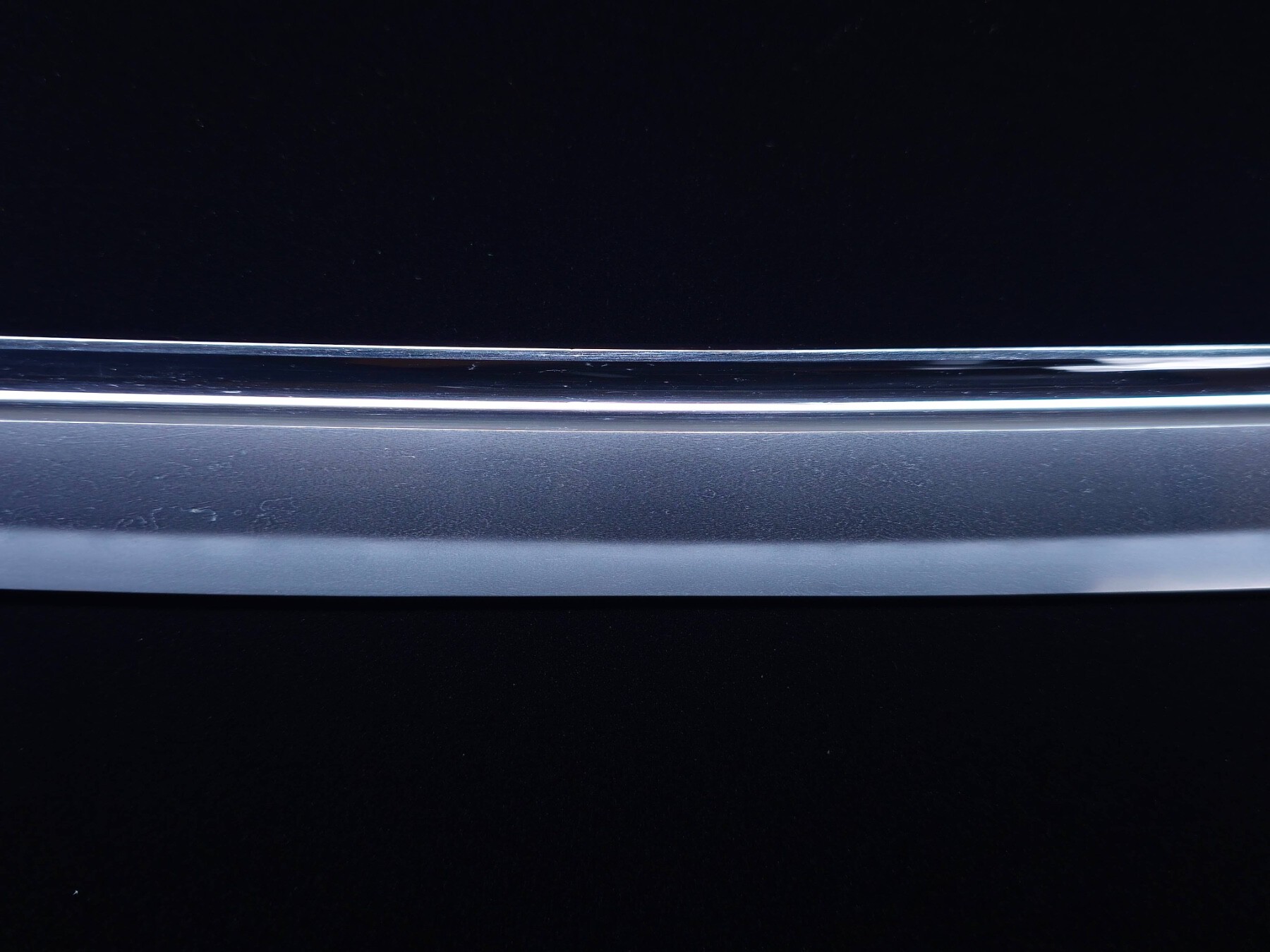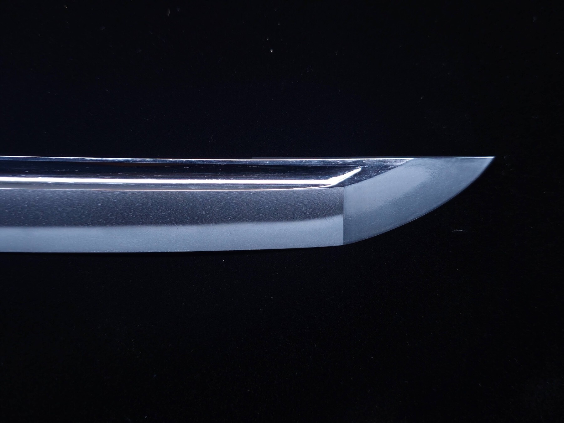 備州長舩五郎左衛門尉清光 – Bishu Osafune Gorozaemon no jo Kiyomitsu 十五字ノ長銘並ビニ天文六年紀有之同工ハ清光ヲ名乗ル鍛冶中最モ上手デ次ヒデ孫右衛門尉ガアリ本作ハ其ノ真面目ナル静謐ナ直刃ヲ焼キ出来宜敷ク鍛錬モ秀デタリ - A long mei of 15 characters and a date of Tenbun 6th year (1537) are inscribed. This smith is the best skilled smith among other smiths named Kiyomitsu. The next best Kiyomitsu is Magoemon no jo. This fine work was done with neat and calm suguha and well forged. 長貮尺二寸三分強 – Length 2-shaku 2-sun 3-bu kyo (a little longer than 67.58 cm) 歳乙巳陽月 – Year of Kinoto-Mi (2025), October 探山識 – Tanzan appraised.5 points