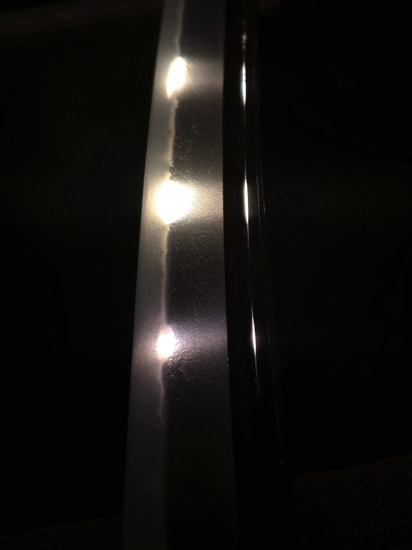 Beautiful contributions by some friends above, who I know are fairly knowledgeable and I can attest they have handled numerous Go (as some of that was a joint opportunity). Elusive as Go is, they do come up occasionally in Japan and if one has the admittedly rare opportunity, they should study them. The nice organic hamon and clarity combined with the uruioi micronie in the jigane is beautiful. Apologies for the bad pictures below but this is what I currently have on my mobile below. I merely want to demonstrate with some photos the “connectivity” to Norishige (note that jihada in some of the Juyo Go photos below) and the lustre. That Go is not one of the most flamboyant but still educational. As Tsuki says, not as prominent chikei or very ostentatious kinsuji but they are still there.8 points
