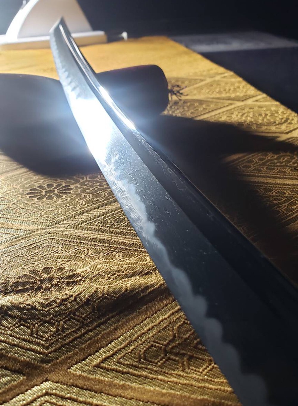 Hi All, No offense at all taken regarding disagreements. After about 5 years of consistent use, with a tameshigiri session every month or so, cutting 20-30 mats each time, with say roughly 4-5 cuts per mat, let's say for argument's sake roughly 5,500 cuts or so, my sword looks very much like this, albeit with the scratches more concentrated in the monouchi area. Yes Jeff, tip cuts are a thing and are practiced specifically in certain styles and by certain practitioners. 'Notice how the scratches stop right at the shinogi — someone did this by hand with a goal in mind.' Tameshigiri scratches do this also though. The pressure from the force/action of cutting is all focused onto both sides of the ji through the path of the cut, hence why the scratches are most prevelent there. The shinogi ji barely touches the target in the cut, because by the time it gets there, ji has forced all the material away from the blade...also worth noting is that the shinogi ji is burnished so is much harder to scratch deeply than the ji, hence the shinogi ji typically does not get as many scratches from tameshigiri. In this case, there doesnt need to be any sandpaper involved - used tatami has in it ingrained many many little sharp bits of dust, dirt and SAND from peoples feet and daily use as a floor mat. This grit of all sorts stays inside the makiwara and scratches blades when they cut it. The scratches are identical. Just my casual opinion looking at the blade, as a tameshigiri practitioner. I have no hesitation to say thats what caused it, but there certainly could have been some non-standard targets used.5 points
