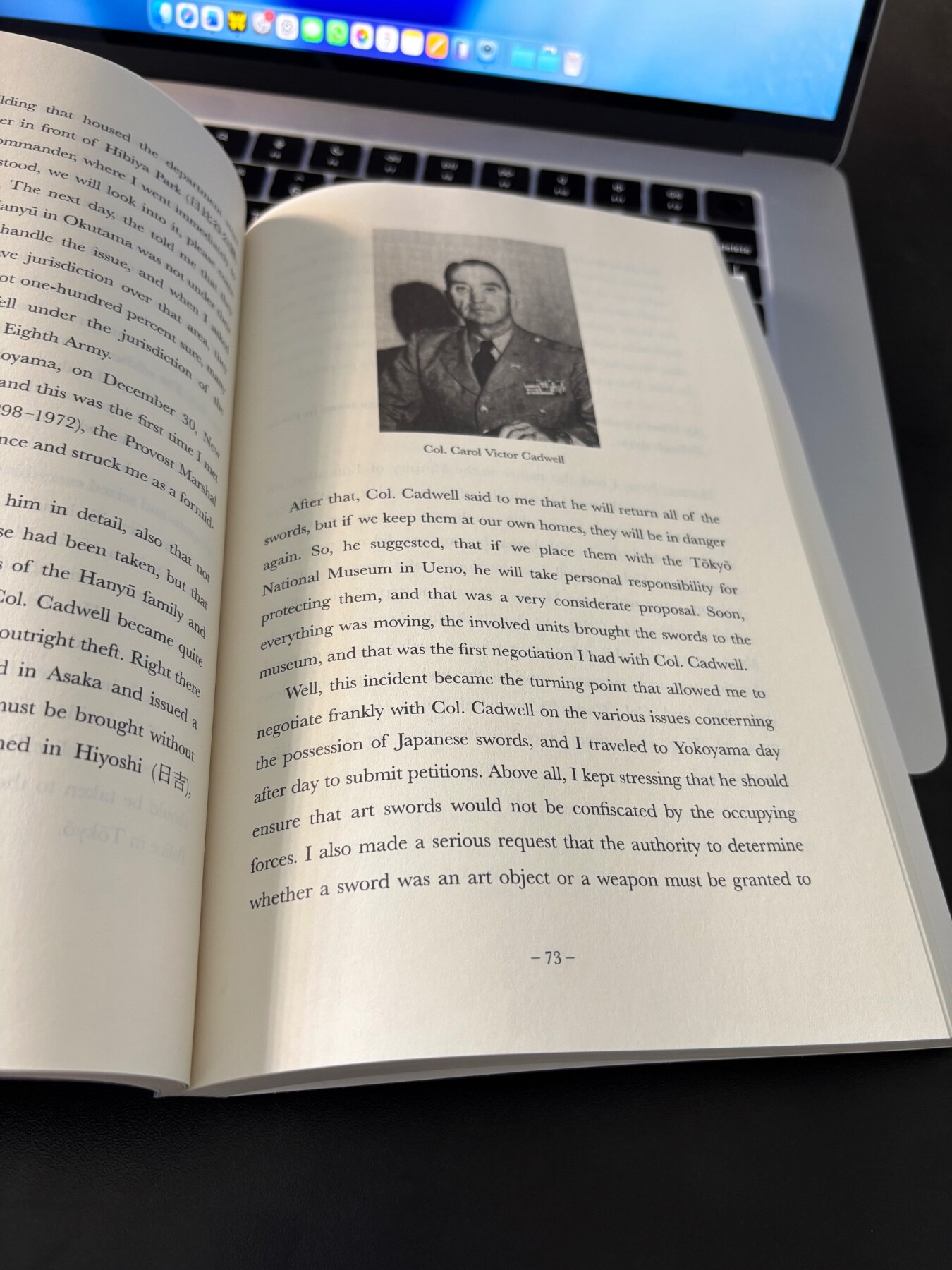 Center) Director of the Japanese Sword Forging Association, Naval Captain Kurata (left) Advisor, Dr. Kudo, Director of the Anki Steel Works.3 points