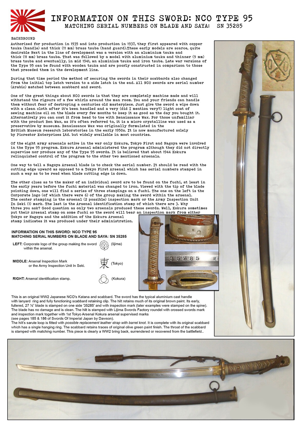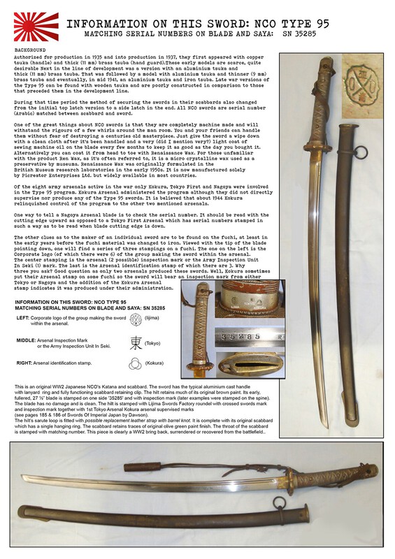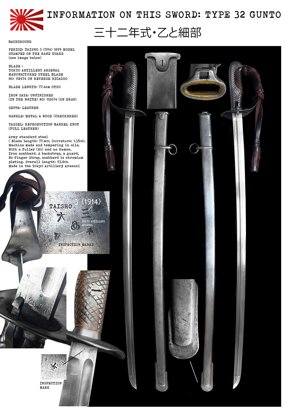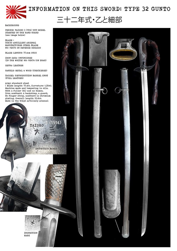 Up for sale is a Type 95 NCO and a Type 32 both in original excellent condition TYPE 95 NCO £950 GBP TYPE 32 £650 GBP UK SALES AND DELIVERY ONLY Buyer to pay for shipping PLEASE READ IN DEPTH INFORMATION AND PHOTOS OF THE SWORDS You can also contact me at: dfxstudio@hotmail.com for a quicker response3 points