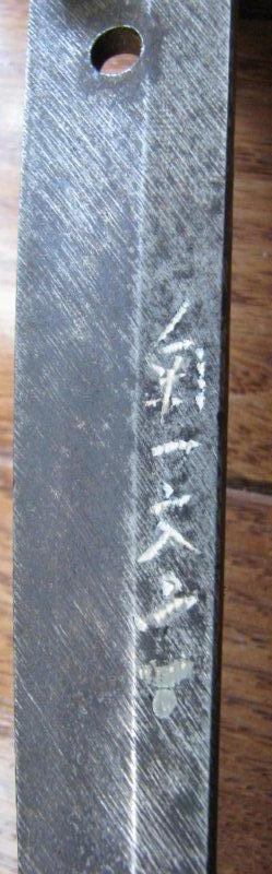 This signature is on a tanto with very nice fittings with gold accents. I would estimate that the fittings are from the 1800s as the securing peg is through the handle is threaded.