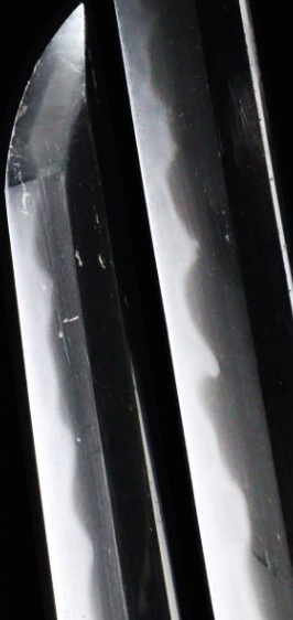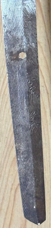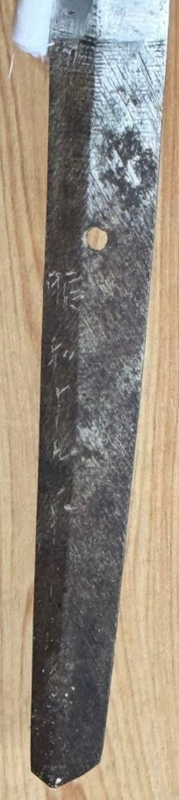 @Babyboomer1 Ken for sword 2, based on pics it could have some interest. Mei appears to be "something MITSU" . I wondered if a rusted stamp above hole (maybe not). Well made and fitted habaki, looks to be well done bohi, and the hamon is of interest. What is the total length of sword, and also the length from tip to "notch" on tang (nakago). That is length in straight line of the cutting edge.