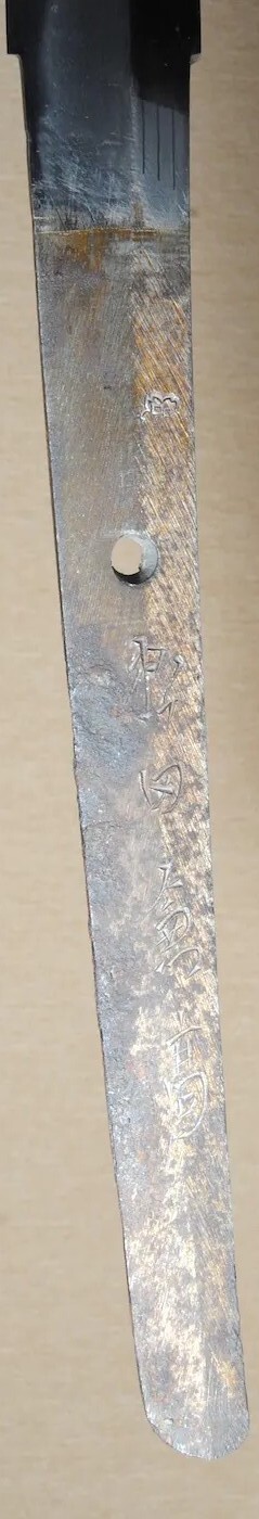 @Slaborde Sara what you had is correct Seki jū Okada Kaneyoshi saku” (関住岡田兼義作). But your pic is : Seki jū Okada Kaneyoshi saku” ...住岡田兼義 Here is an example from Slough book. He is an OK smith producing Showato in Seki during the war. From Sesko book: “Kaneyoshi” (兼義), real name Okada Takeshi (岡田武), born October 20th 1908, younger brother of Okada Kanesada (岡田兼定), he worked as guntō smith and died March 15th 1972. Ranked as jōkō no retsu in 1942 list of around 400 smiths (5/7), and Fourth Seat at the 6th Shinsaku Exhibition in 1941. Does your blade have a stamp at the top of the kanji ?