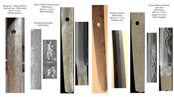 @TastyReuben Patrick, interesting kaigunto by YOSHIAKI 義明: real name Mishina Naoichi (三品直市). Born Meiji 42 (1909) July 27. Registered as a Seki smith Showa 14 (1939) October 25 (age 30). In 1940 was a member of Seki Token Kaji Association. In Akihide Banzuke list of 1942 is rank of Ryōkō no retsu (7/7). He has examples with Sho stamp (no date) and Seki stamp (1941) with dragon horimono and bonji which is unusual in war period. Died Heisei 1 (1989) February 5 at age 70. Does not appear to work post-war. Example mei: (“Yoshiaki” SHO) (“Mishina Yoshiaki” SEKI), (“Yoshiaki” “1941” SEKI).