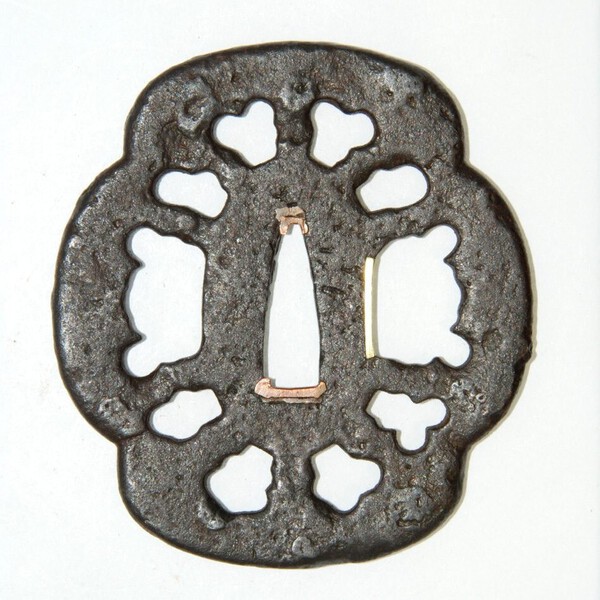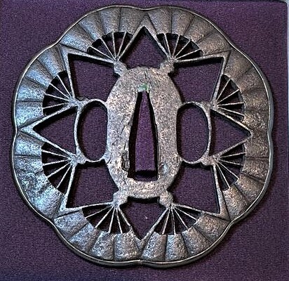 7. Thank you. I could not recognize the "sukashi tsuba" which I thought was should be. Was hoping for an attribution since the tsuba is quite nice with shibuichi mimi added. Seems different than typical Kyoto work. Ron STL