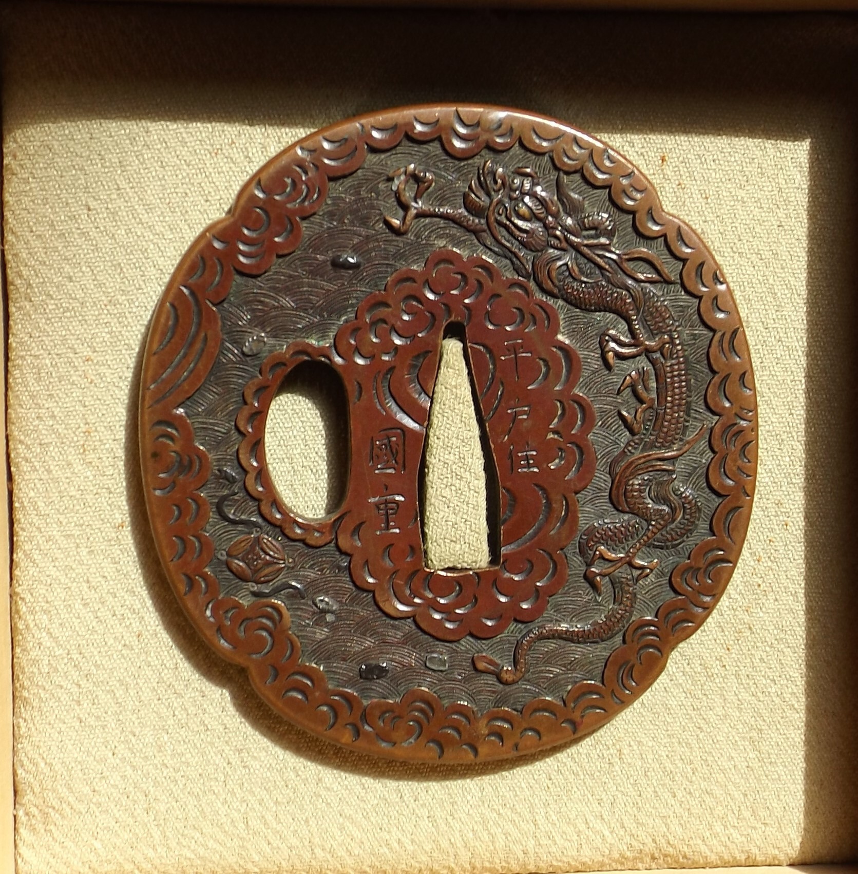 Dear Mark. One of the things that cleaning it up will do is remove the patina from an alloy known as shakudo. This is a distinctive Japanese alloy of copper with a small percentage of gold which, when treated correctly, acquires a deep lustrous black colour which is still evident on the eyes and the inlayed sections at the back of the wing. Some of these retain their colour while some are now looking like copper where the patina has been removed. All being well, and further cleaning eschewed, these inlays will recover their patina over a considerable time. I appreciate that you are not interested in the monetary value but the best way of approaching this item is as a work of art and yourself as its temporary custodian. That art will communicate down the years if cared for. Enjoy this and keep up the research. In terms of age I note that no one has hazarded an assessment yet, it is an unusual tsuba. My guess would be late 18th to 19th century, just to get the ball rolling, but I look forward to others informed opinions. All the best.