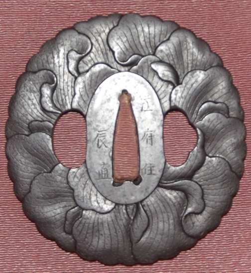 One of my first posts, for what it's worth I also believe your tsuba is Choshu school. The design looks to be one big Peony blossom. They used it alot on their tsuba, mostly as part of the motif instead of the whole thing, I've only seen a couple like this. Attached are a couple pictures of a tsuba I have similar to yours, same edges too. Mine measures a little over 3 inches across. I had a note with a the translation but it's not in the box with it, I think it might read Choshu ju Katsunao but I'm sure I mistranslated it. Yours looks more 3 dimensional than mine though and maybe a little older, pretty neat. Regards, Lance