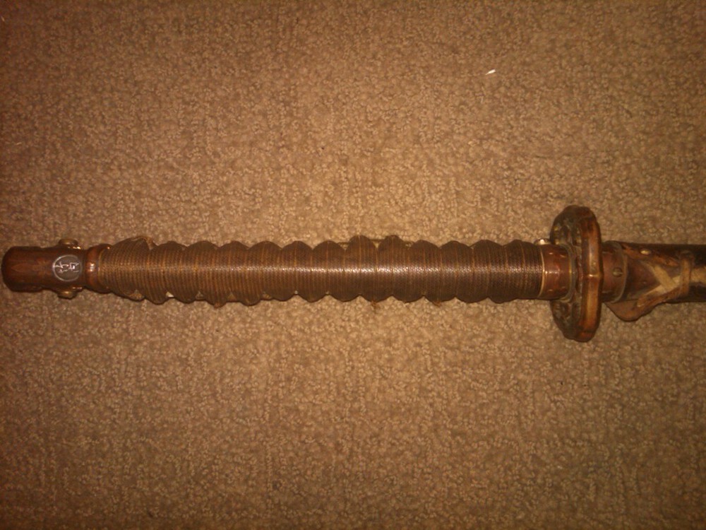 I have looked at a few low quality pictures of the hilt on "type 94" swords online and this seems to be more detailed, and couldn't quite match it with any other pictures. I can take high quality pictures tomorrow in proper lighting on a proper camera if requested.
