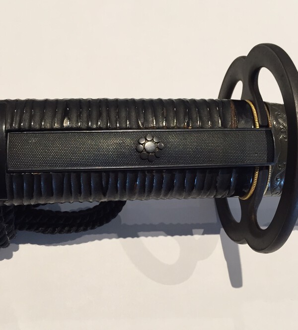 Hi all, I purchased this Koshirae recently and although it doesn't have the classic Nishigaki waves F/K, it is classic Higo with the Black Same, leather ito and rounded shibuichi kogiri.. This koshirae has that subdued and elegant 'tea taste' style about it that I really like. : The saya has provision for a Kozuka so although it is 102 cm Katana Koshirae, it think it may have more likely been a Bashin perhaps..? Any thoughts on this? Barrie.