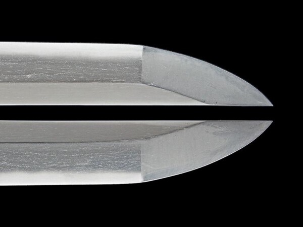Okay, I have this sword, and the Boshi on it is really nice, I really love these type of blades. The question I need to know is, the Boshi on this is either ; Ikari-O-Kissaki, or O-Kissaki type Boshi only. I know the blade is from the Shinshinto Era. The Hamon is Ko-Notare, cant really see it in the pics, but as i turn the blade in the light, it does come through. The Ha is a little bit over 15', and the total length is a little bit over 20". The Nakago seems Ubu, and is Mumei. The Hamon runs all the way through the Boshi, no cut off, or disturbance in it at all, so if anyone is asking if it has been an repaired blade, or if the O-Kissaki is original to this blade, It looks like this blade was originally made this way. It does need a good polish. Thank you Brian