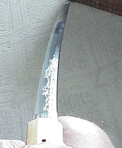 -dragon horimono (carving) on the left side towards the habaki and about 10 inches long