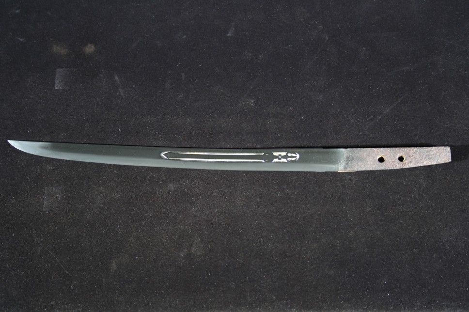 Piers, IMHO the nakago has been "cleaned" by an amateur and then "repatinated" It seems original, though, with oine mekugi ana filled. Koshirae: the fuchi seems awkward, it is simply to broad for that short handle. The kashira seems to come from some handachi mounts and does not correspond to the saya. I love the menuki, the rabbit is so cute :-) The wooden tsuba fits into the picture of a koshirae which has been put together from ready available parts - it looks more like a thick seppa. My gut feel is: the saya and the bashin are original, the tsuka has been compiled from whatever was at hand. Actually, I like the saya and the bashin very much. All in all, if you bought it for a song, it was a very good deal. How long is the nagasa? I should think it would not exceed 20 cm? The blade is also nice and good enough to be studied. Well done :-) John, many thanks about your comments on the primary function of a tsuba. I haven't thought about this. But given, that it was the area above hamachi which was used to parry blows of the enemy's sword (as explained by Sugano Sensei in this clip: ) I guess that the samurai preferred a tsuba which was not easily cut.