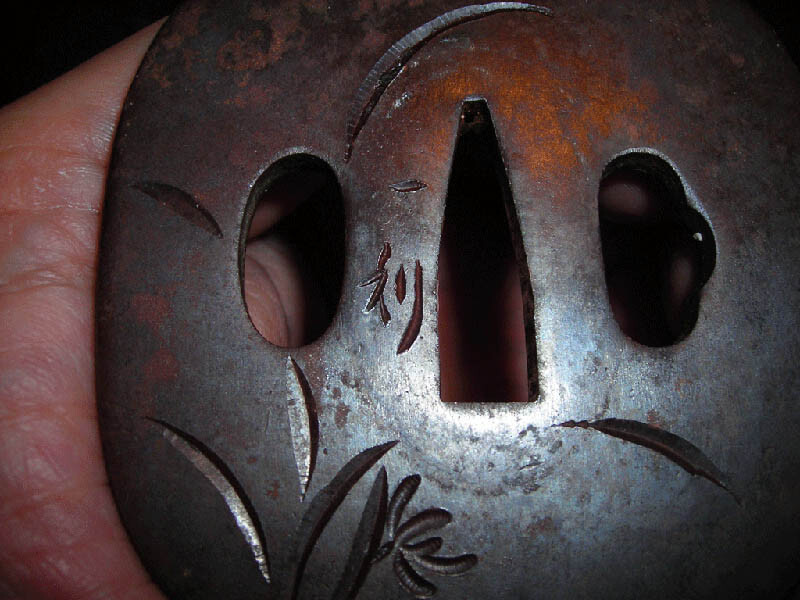 On a sword that I recently acquired, I was wondering who the tsuba was made by. The sword was atrributed to Noro Masanori, but the iron handguard appears older. It is a flat iron, about 8-10mm thick. It has a cutout for the small knife, and a wild grass or reeds scribing on it. Please help me to determine the maker, and age, and value if any. Thanks in advance, I have tried unsuccessfully for a while.