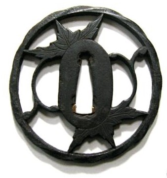 Quoted from Jim Gilbert's site : The tekkotsu on the rim and the rougher finish of the iron lend me to think Owari. However, as you say, the thin walls and design are much, much more Kyo influenced. Due to the thinness, one would think the metal would have to be softer as well. Slightly rounded rim, asymmetry, and narrow seppa-dai are seen more in Kyo works. My vote would be that it is a Kyo guard with some Owari spices thrown into it (Kyo-Owari).