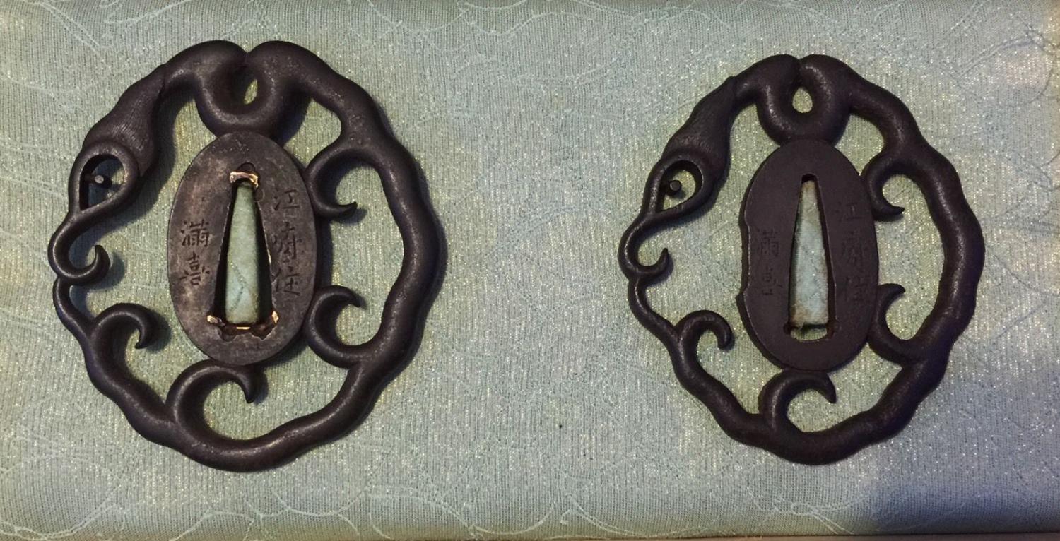I think those menuki (the one on the way) are quite nice! (maybe this is because I own/treasure a very similar set though). They arrived very corroded and by the condition I assumed they were about 150-200 years old. I gently cleaned off the corrosion and coated with wax so they look newer now, but since I actually have them on me at work.... EDIT: After reading Jean's next post I'm starting to see another learning opportunity for myself, and I think your menuki are actually a little nicer than mine. Oh well I still think they will be useful and enjoyable for me. About the first blade not having the lowest portion of the blade unpolished (ubu ba?), that may have happened in the blades last so called restoration, but that would involve some serious grinding so probably not case here.