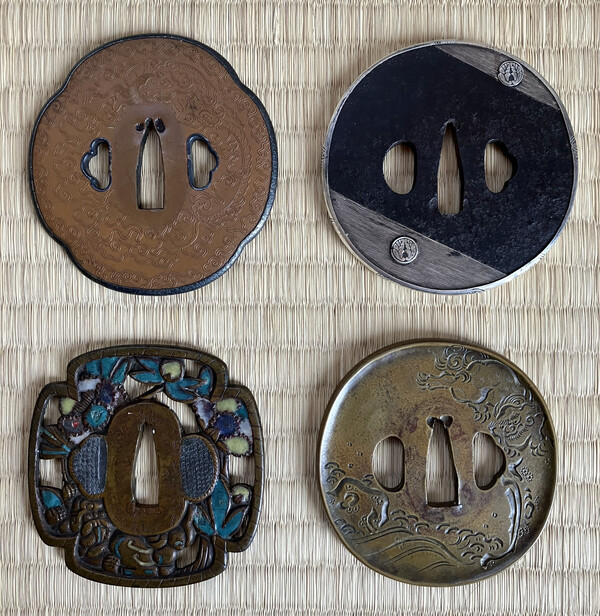 Note: the tsuba is sanmai (two copper plates sandwiching a copper core), and the style is similar to a tsuba attributed to Tachishi: https://blog.goo.ne.jp/tsuba_001/e/9472158ce3bae566d53a31ceb89994a1