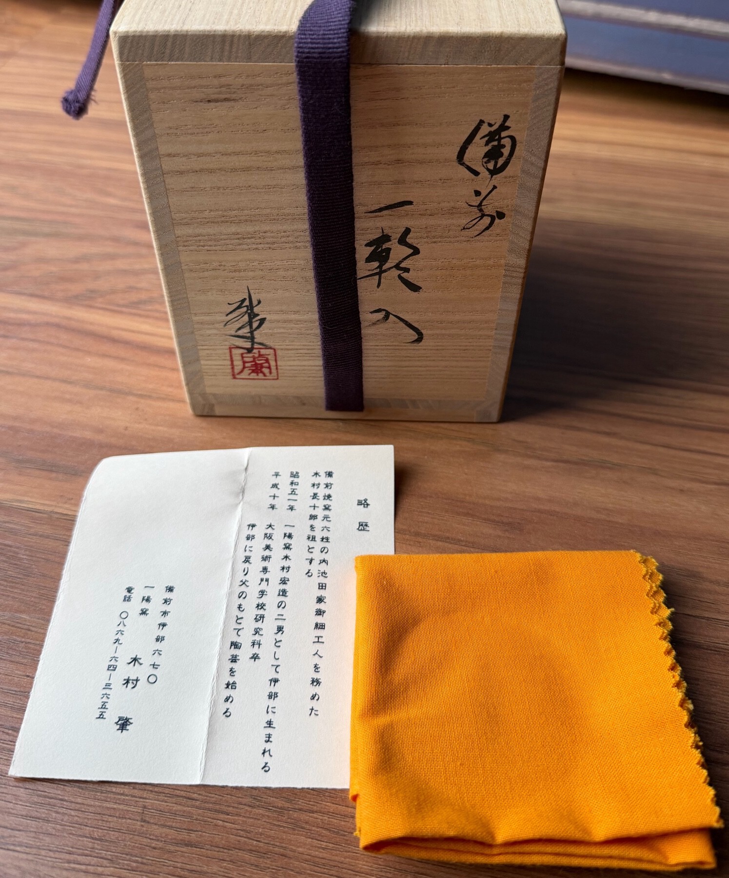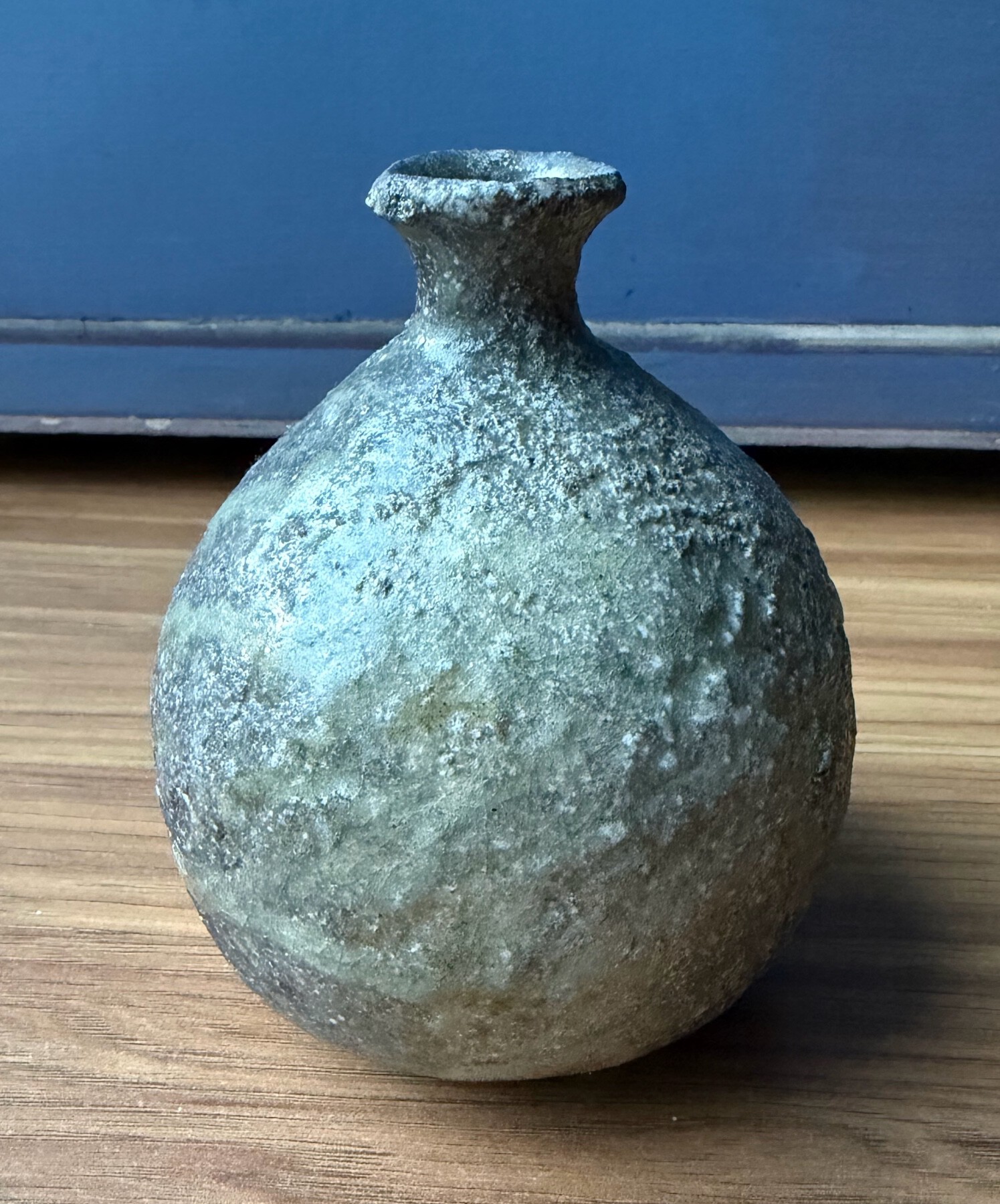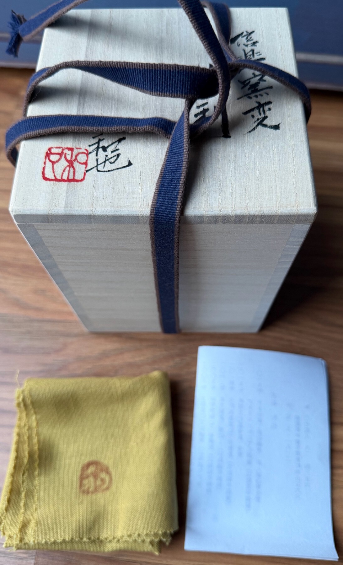 Good evening NMB, On offer today is a classic tokkuri (sake flask) by one of the best potters working in the Shigaraki style today. Kazuya is the son of Furutani Michio, a legend whose untimely passing left a massive void in the world of wood firing, one which his son has since filled and then some. This piece displays an almost unbelievable range of firing effects, a trademark of the family who literally wrote the book on modern anagama firing. As his late father said, if the kiln doesn’t fire the way you want it to, tear it down and start over - a collection of bricks, as it were. Kazuya is based in Shigaraki and categorizes his wares as such, however this work is what comes to mind when we think of Iga. The dark, scorched body due to the immense heat and long firing duration, thick ash glaze deposits ranging from moss green, to emerald and even some blue tones mixed in. Several large “dragonfly eyes” have formed where the glaze pools after running down the body, a highly sought after characteristic. This bottle measures 13cm tall and holds a generous portion due to the bulbous form. In perfect condition and comes with its original box, cloth and paperwork as shown. $250 shipped to the USA, international buyers please contact me for a quote. Payment via PayPal FF only please. I’ve included pics in two sets of lighting as pottery, and specifically natural ash glaze styles can vary considerably depending on the source. Please let me know if you have any questions or need additional pics. Thanks for looking!