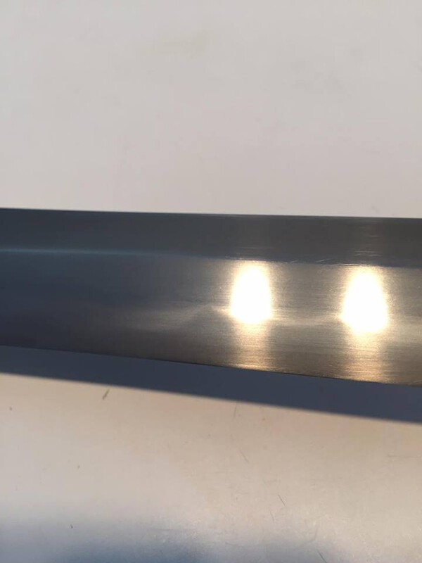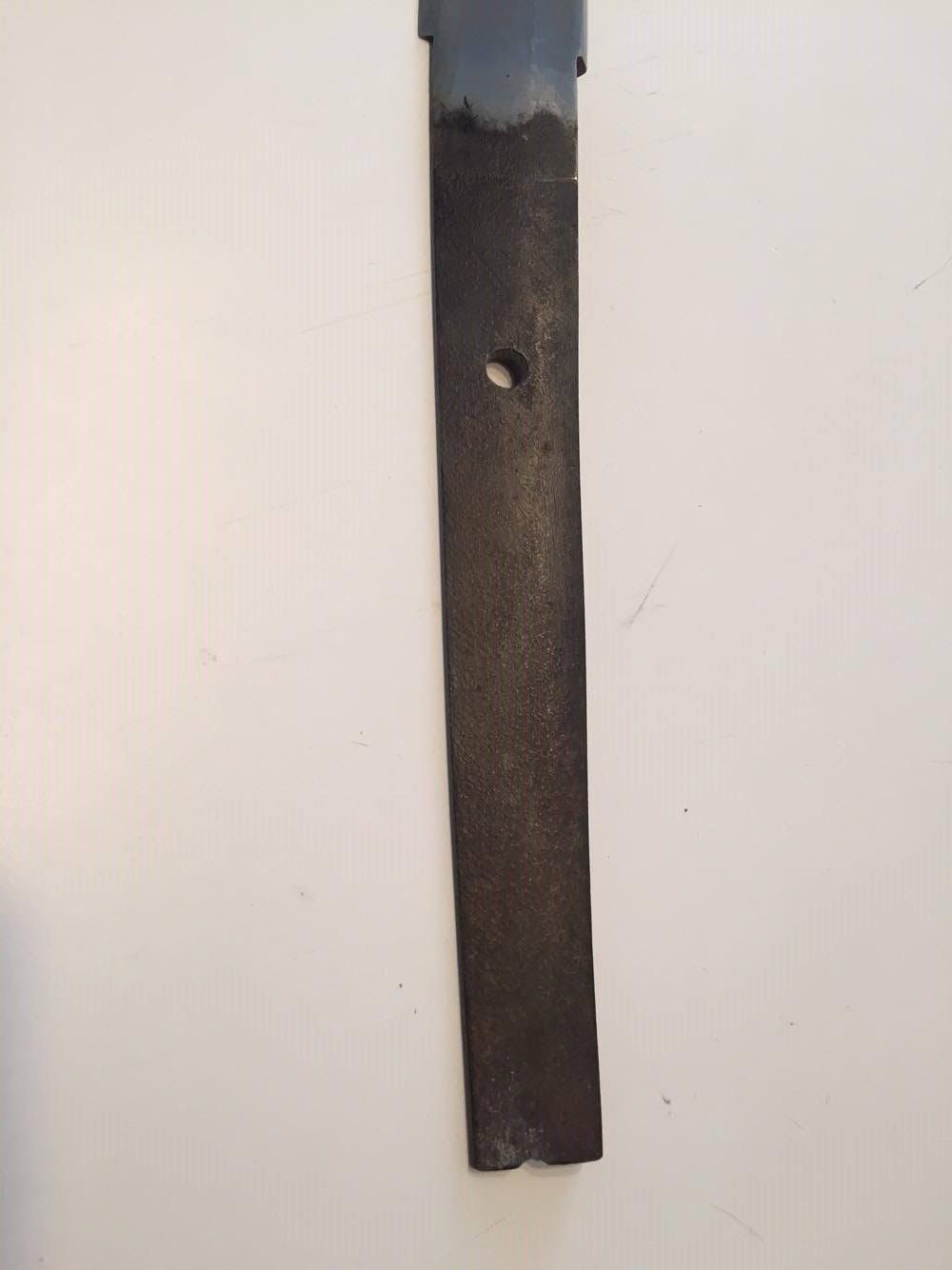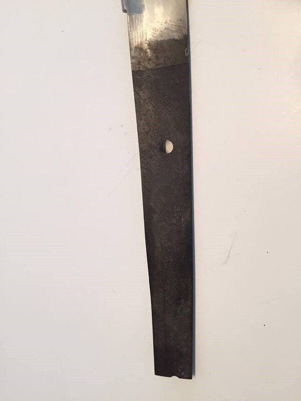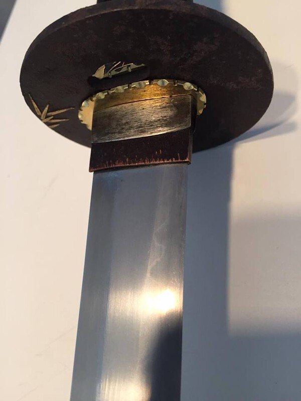 4. Another one of my previous mounts has gone up for sale while my friend is still down on his luck. Mumei and o-suriage, this blade has a good weight to it! This customer used the koshirae that I was selling on here a while ago to use when I mounted this for him. Wally Hostetter re lacquered the saya in a nice simple black. to freshen things up. I made a new tsuka and used a high grade samegawa from namikawa in a full wrap which I then antiqued to look old, and a simple black silk for the tsuka-maki. Used bambo themed koshirae and i believe shishi dog menuki. I think this would definitely look great with a fresh polish I see a lot of potential for the blade under that old polish. Nagasa: 67.0 cm. Sori: 1.8 cm. Moto-haba: 3.2 cm. Saki-haba: 2.4 cm. Moto-gasane: 0.7 cm. Saki-gasane: 0.5 cm. http://www.ebay.com/itm/252727262741?ssPageName=STRK%3AMESELX%3AIT&_trksid=p3984.m1558.l2649&autorefresh=true He set the auction as no reserve, I placed a starting bid. As you can tell from the last blade he put up someone got one heck of a steal! He will only ship to US and Canada, but if there are others who wish to bid, I will more than gladly act as an intermediary, have him ship the blade to me, and then ship the blade for him to your location for only the cost of the shipping I incur. Good luck everyone! Cheers, Sal'