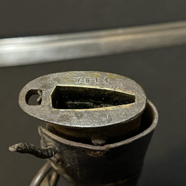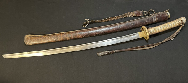 Here's one that checks all the boxes at this St Croix sale: Type 95 Leather covered, tassel, battle damage, early matching Suya Shoten with accurate wrap with screw through the wrap: