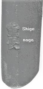 That's an odd one, Dean. I have a Shigenaga on file that used a stamped mei, but yours doesn't have the "naga." For the guys to comment on the age/school of the blade, you'll need to post a full-length photo and a couple of shots of the hamon and boshi. -