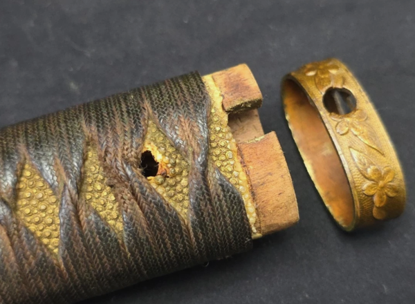 I would venture, though, that this blade tip shape is not a standard, or commonly seen shape on a sword found from the war - shobu-zukuri. It would have been something older, civil. Or it was simply something manufactured after the war, as stated earlier, for souvenir sales. -