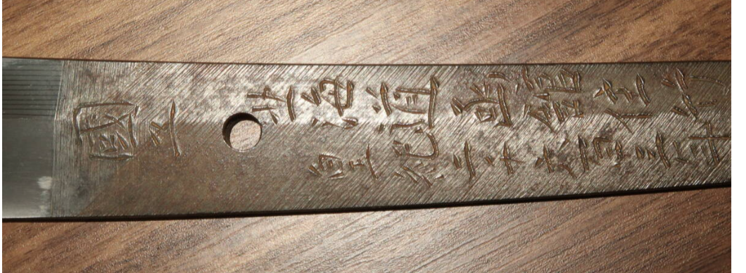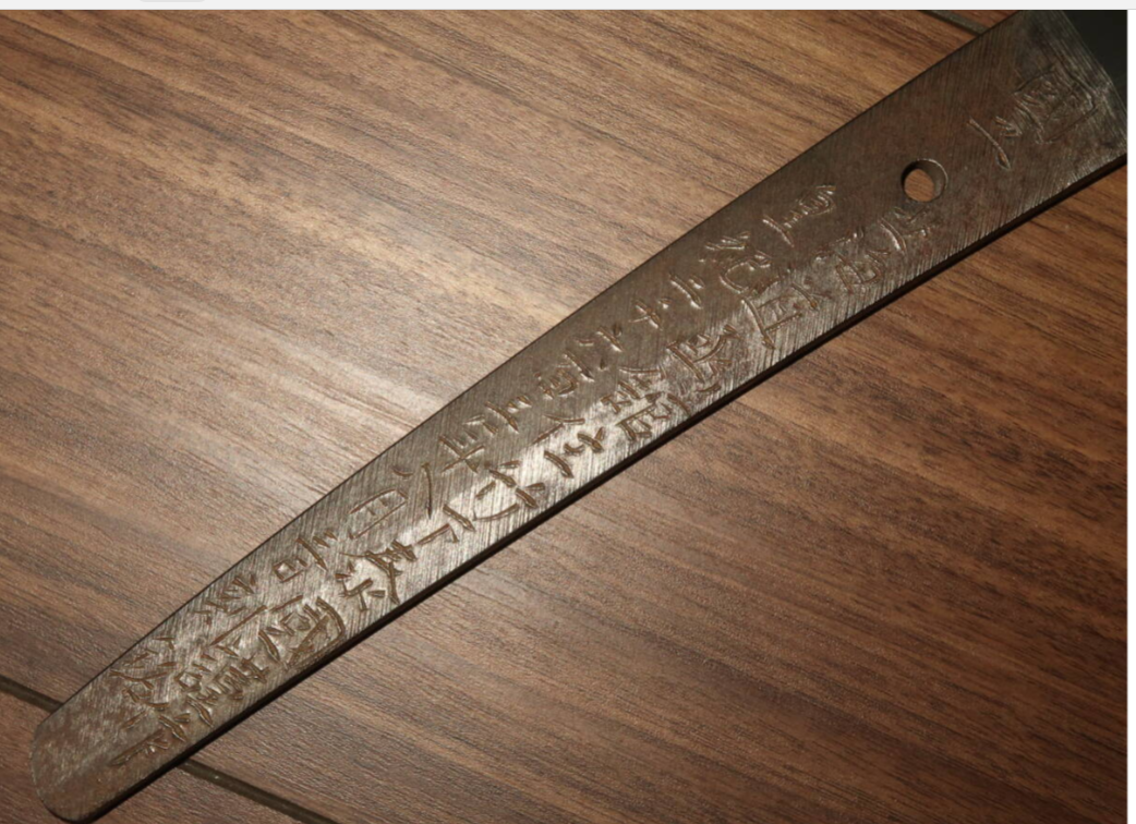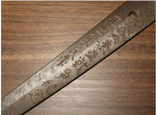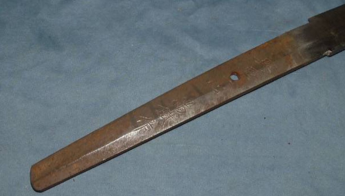 The stamped mei were uncommon, but I have a few on file from 4 smiths: Seven blades from Masayuki 9 Naohiro 1 Nobumitsu and now 2 Shigenaga (this one from JSI) We now have 2 Amahide blades with other smith names stamped at the bottom - Shigenaga and Kanemaru.