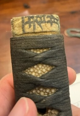 A small correction to my post - the Yoshitsugu is an old blade, made by a smith from Mutsu province in 1803. But same explanation could still apply - blade was fitted out by a different shop, different city, than the Masatsugu blades. I'll be honest, my gut says the paint on the saya throat of Tom's post looks almost too new, which lends to post-war assembly, but something else on the other hand, is ..... what are the odds of a post-war Bubba getting his hands on 2, yes TWO Masatsugu blades made in the same month and year?! Seems unlikely to the max. More believable to me is the late-war theory. -