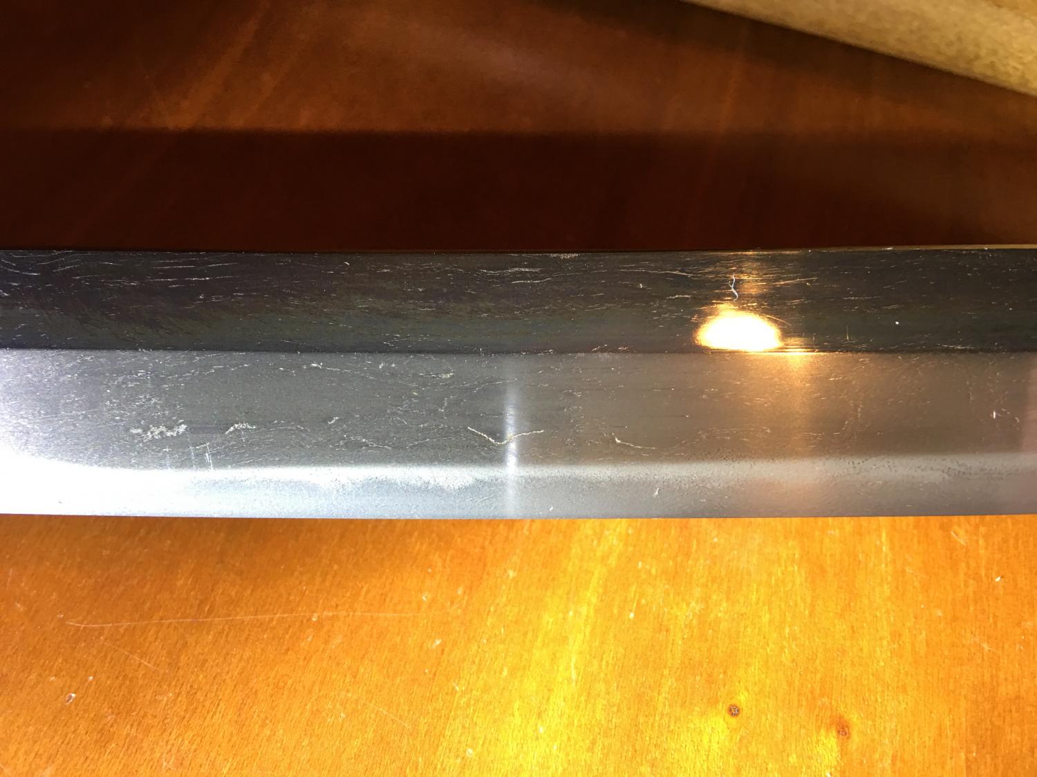 To wrap this up and for perspective on the rest of the blade itself. Here it is. Also, ive attached a shot of an odd circular stamp at bottom of nakago which might have been a clamp or tool mark. Thanks for indulging my momentary lapse of antique junk shop logic as i learn.