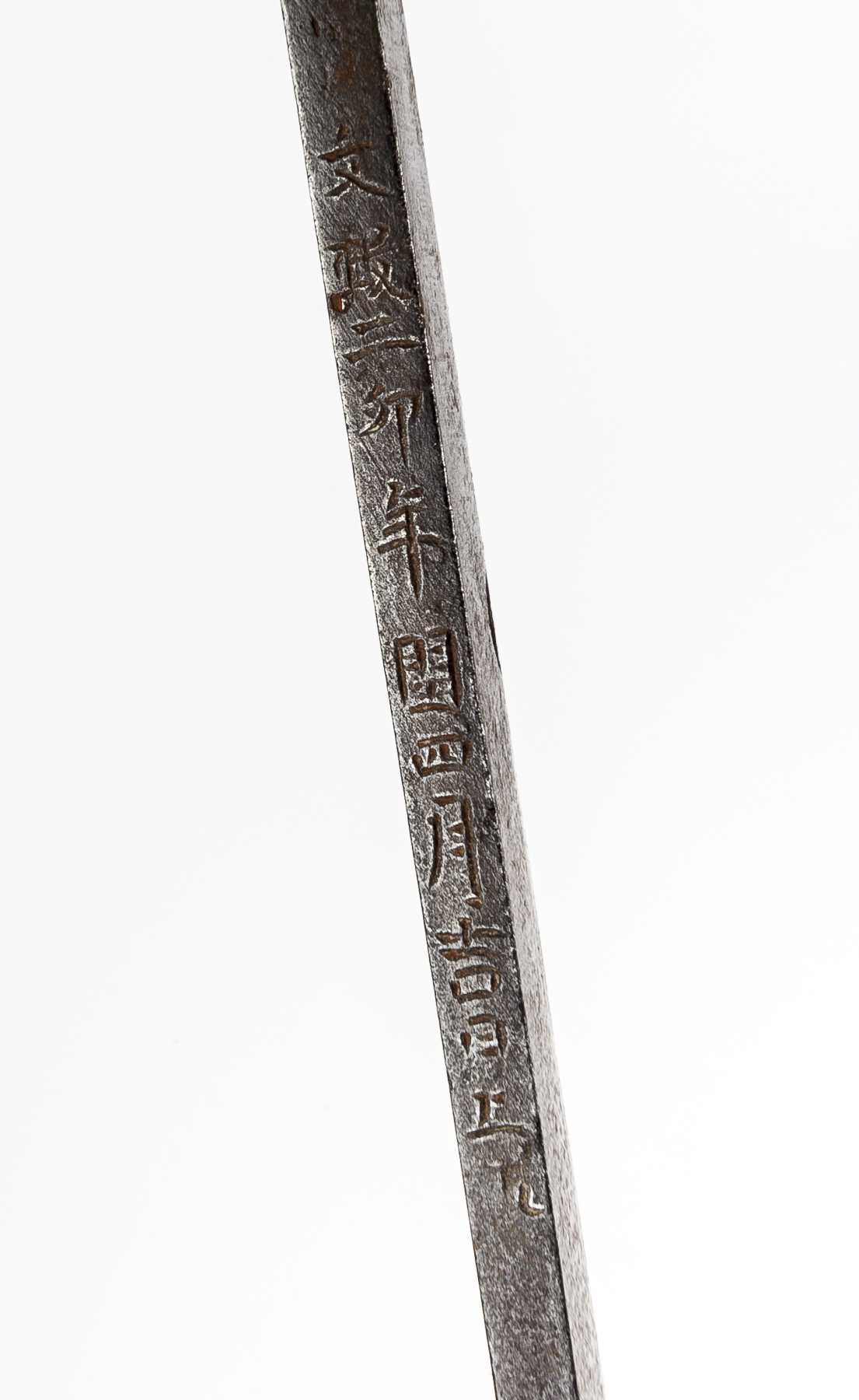 3. Gentleman, May I ask for a translation of this blade with an orikaeshi mei? Im told the mei reads Kanesada, attributed to the 17th century. Not papered. It is in WW II era mounts. Thank you so much.